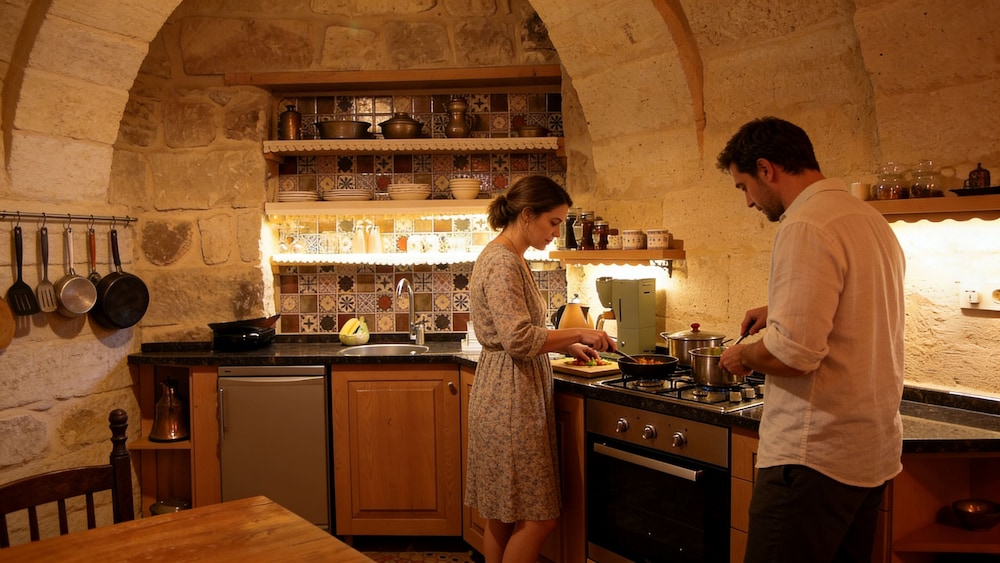 Anitya Cave House in Ürgüp liegt im historischen Viertel, wenige Schritte von Nationalpark Göreme und eine 4-minütige Fahrt von Göreme Open-Air-Museum entfernt. Dieses Gasthaus ist 8,6 km von Liebestal und 10 km von Burgfelsen von Uçhisar entfernt. Fühl dich in einem der 2 Zimmer, die individuell ausgestattet sind und Küchen bieten, die über große Kühlschränke/Gefrierfächer und Öfen verfügen, wie zu Hause. Dein Bett bietet Daunenbettdecken und hochwertige Bettwaren. Die Zimmer haben eigene möblierte Patios. 32 Zoll groáe Flachbildfernseher mit Digitalempfang sorgen fr gute Unterhaltung; auáerdem steht ein WLAN-Internetzugang (kostenlos) zur Verfgung. Entfernungen werden bis auf 0,1 Kilometer gerundet.