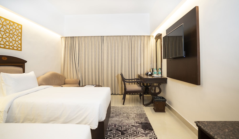 Zum Angebot gehören ein kostenloser Internetzugang per Kabel, ein rund um die Uhr geöffnetes Businesscenter und ein Limousinenservice. Für Veranstaltungen stehen folgende Einrichtungen zur Verfügung: Konferenzfläche und Tagungsräume. Ein Abholservice vom Bahnhof (rund um die Uhr) wird kostenlos angeboten. Außerdem findet sich Folgendes vor Ort: Parkservice (kostenlos). Entspann dich im Wellnessbereich, der Körperbehandlungen bietet. Für deine Freizeit bieten sich folgende Einrichtungen an: Dampfbad und Fitnessmöglichkeiten. Zu den Highlights, die dieses Hotel bietet, gehören zudem kostenloses WLAN, ein Concierge-Service und Einkaufsmöglichkeiten. In die Umgebung bringt dich der Shuttle (gegen Gebühr), der in einem Umkreis von 5 km fährt. Deinen Durst kannst du an der Bar/Lounge stillen. Ein inbegriffenes Frühstücksbuffet wird täglich von 07:00 Uhr bis 10:00 Uhr angeboten.- Gebühr für den Flughafentransfer: 1500 INR pro Fahrzeug (Einzelfahrkarte), maximale Personenanzahl: 2