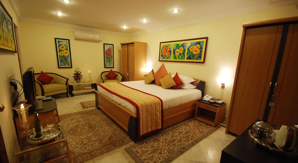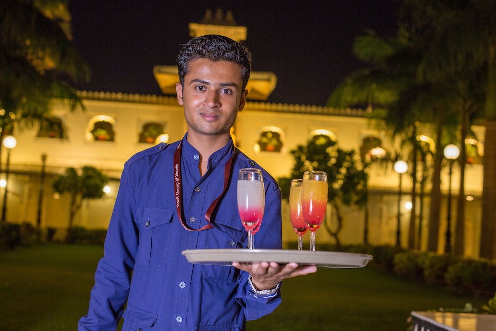 Jagmandir Island Palace besticht durch eine zentrale Lage in Udaipur, nur wenige Schritte von Pichola-See und 5 Minuten Fahrt von Stadtpalast entfernt. Dieses Hotel im luxuriösen Stil ist 5,1 km von Lake Fateh Sagar und 0,1 km von Jag Mandir entfernt. Fühl dich in einem der 7 Zimmer wie zu Hause. Ein WLAN-Internetzugang (kostenlos) ist ebenso verfügbar wie Satellitenempfang. Es sind eigene Badezimmer mit Duschwannen vorhanden, die Whirlpools und kostenlose Toilettenartikel bieten. Zur Austattung gehören Telefone ebenso wie Safes und Schreibtische. Entfernungen werden bis auf 0,1 Kilometer gerundet.