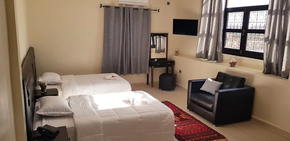 Zum Angebot gehören eine rund um die Uhr besetzte Rezeption, mehrsprachiges Personal und eine Gepäckaufbewahrung. Der Flughafentransfer (rund um die Uhr) ist kostenpflichtig; außerdem gibt es vor Ort Folgendes: Parken ohne Service (kostenlos). Nutzen Sie folgende Freizeiteinrichtung: Außenpool. Sie können aber auch den schönen Ausblick von folgendem Punkt genießen: Terrasse. Auch kostenloses WLAN und Unterstützung bei der Tourenplanung/beim Ticketerwerb werden angeboten. Al Baraka des Loisirs bietet seinen Gästen ein Restaurant mit köstlichen Speisen. Ein inbegriffenes kontinentales Frühstück wird täglich von 07:00 Uhr bis 10:00 Uhr angeboten. Diese Unterkunft ist vom 24. November 2022 bis zum 23. November 2024 geschlossen (Änderungen vorbehalten).Die folgenden Gebühren sind direkt in der Unterkunft zu bezahlen:
