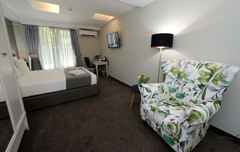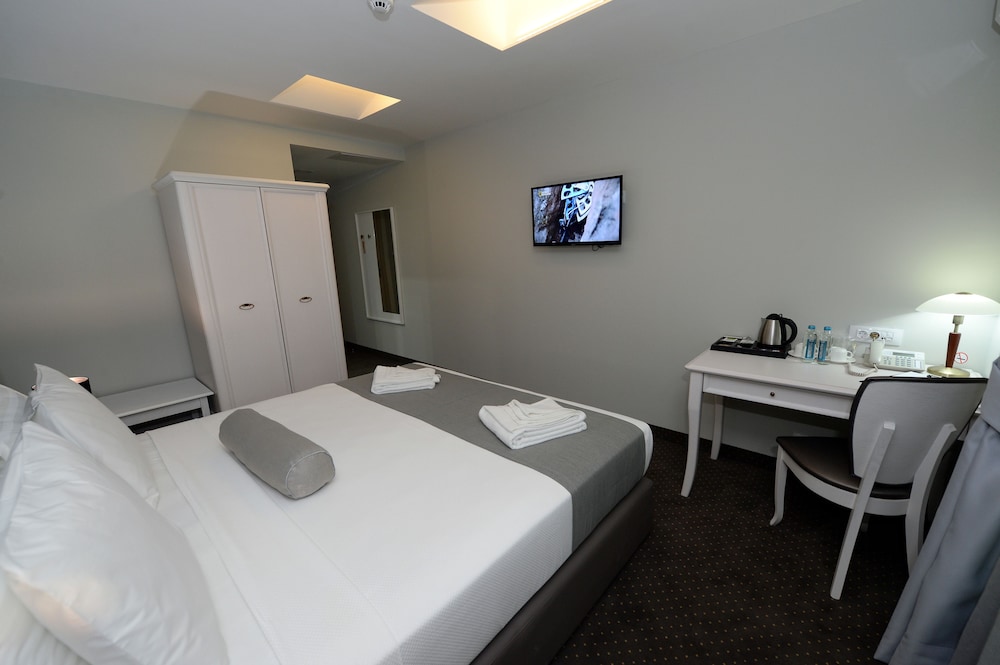 Hotel Alexandar II liegt im Herzen von Skopje, nur wenige Schritte von Gedenkhaus von Mutter Teresa und 3 Gehminuten von Makedonija-Platz entfernt. Dieses Hotel ist 0,2 km von Feudalturm und 0,3 km von Porta Macedonia entfernt. Fühl dich in einem der 23 klimatisierten Zimmer mit Minibar und Flachbildfernseher wie zu Hause. Es gibt einen kostenfreien Internetzugang per Kabel und WLAN sowie Kabelempfang. Die Badezimmer bieten Duschen, kostenlose Toilettenartikel und Haartrockner. Zur Austattung gehören Safes und Schreibtische; die Zimmer werden täglich sauber gemacht. Entfernungen werden bis auf 0,1 Kilometer gerundet.