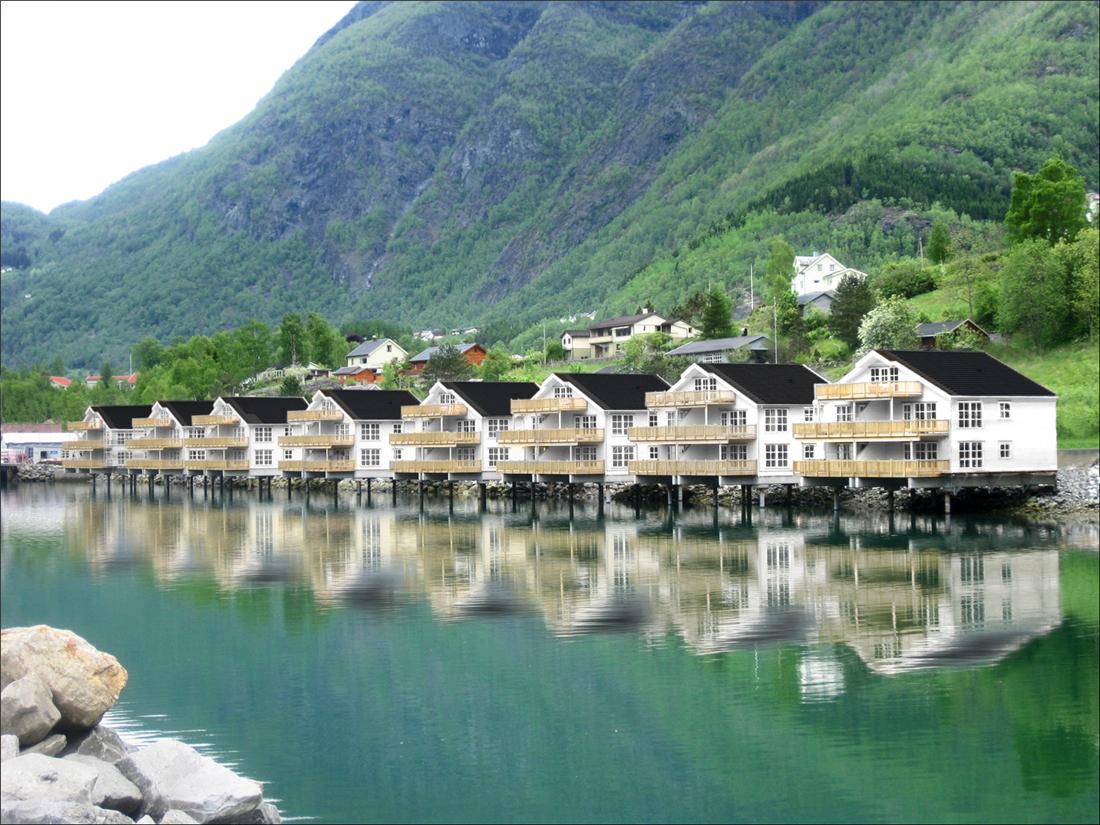 Moderne, auf Pfählen gebaute Appartements im malerischen Dorf Skjolden. Insgesamt gibt es 8 Gebäude mit jeweils 4 luxuriösen Appartements. Außerdem gibt es noch 9 Ferienhäuser.