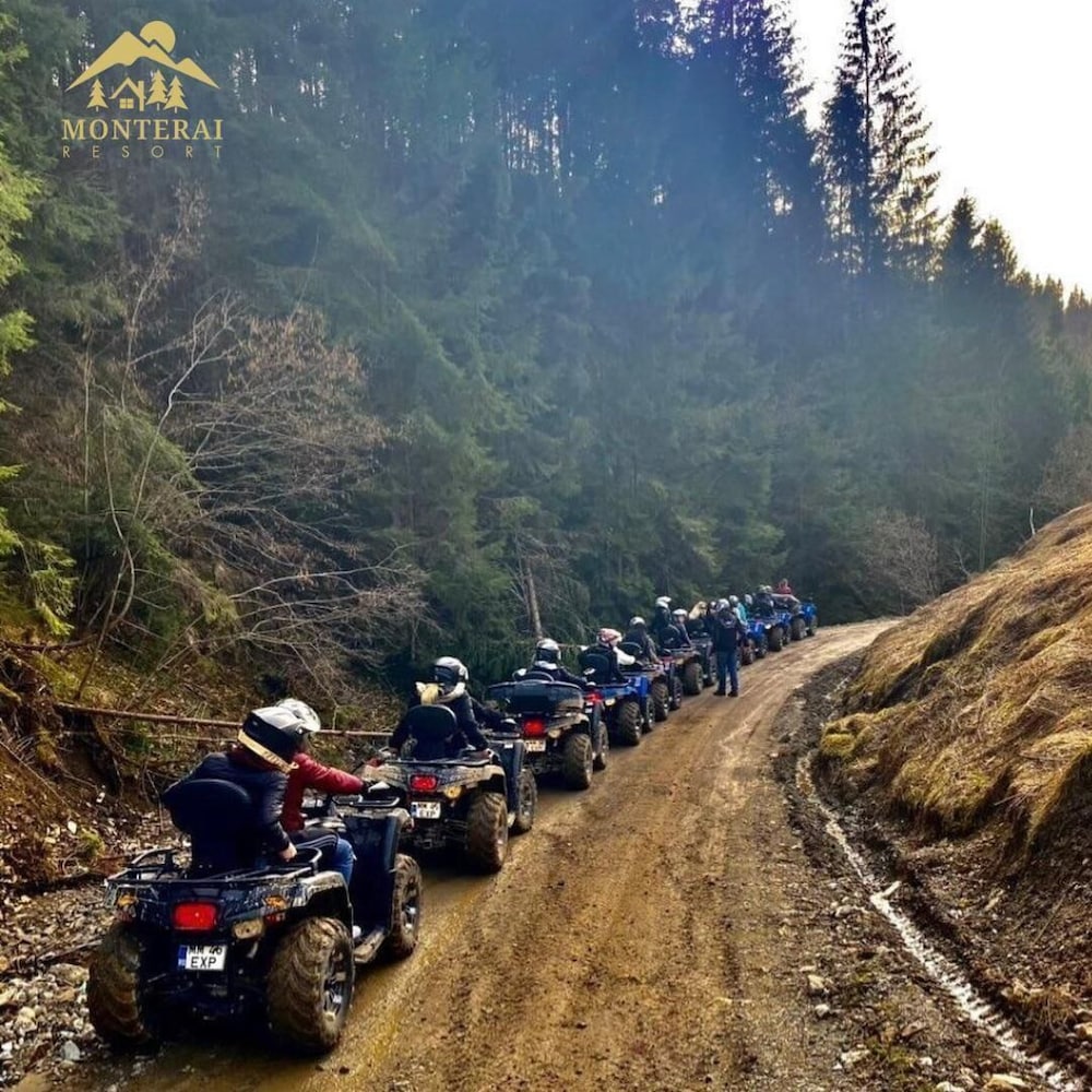Monterai Resort in Brasov lockt mit einem Aufenthalt, der nur 5 Autominuten von Kirche St. Ivan Butezatorul und Skigebiet Poiana Brașov entfernt ist. Dieses Aparthotel für Familien ist 24,2 km von Burg von Bran und 9,2 km von Weißer Turm entfernt. Mach es dir in einem der 53 Zimmer, die individuell ausgestattet sind, gemütlich. Ein WLAN-Internetzugang (kostenlos) ist ebenso verfügbar wie Kabelempfang. Die Badezimmer bieten Badewannen oder Duschen, kostenlose Toilettenartikel und Haartrockner. Zur Austattung gehören Safes, die Zimmer werden täglich sauber gemacht und auf Anfrage erhältst du Folgendes: Bügeleisen/Bügelbretter. Entfernungen werden bis auf 0,1 Kilometer gerundet.