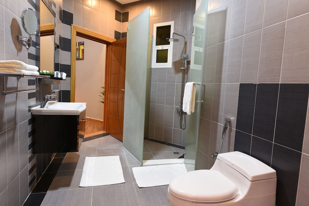 Clemence Hotel Suites liegt in Riad und ist eine 5-minütige Fahrt von The Business Gate und eine 5-minütige Fahrt von Al-Hammadi-Krankenhaus – Al Nuzhat entfernt. Dieses Aparthotel ist 6,5 km von Internationales Kongress- und Messezentrum Riad und 19,3 km von Al-Batha-Markt entfernt. Fühl dich in einem der 55 klimatisierten Zimmer, die Küchen bieten, die über große Kühlschränke/Gefrierfächer und Herdplatte verfügen, wie zu Hause. 49 Zoll groáe LED-Fernseher mit Satellitenempfang sorgen fr gute Unterhaltung; auáerdem steht ein WLAN-Internetzugang (kostenlos) zur Verfgung. Zur Austattung gehören Telefone ebenso wie Safes in Laptop-Größe und Schreibtische. Entfernungen werden bis auf 0,1 Kilometer gerundet.