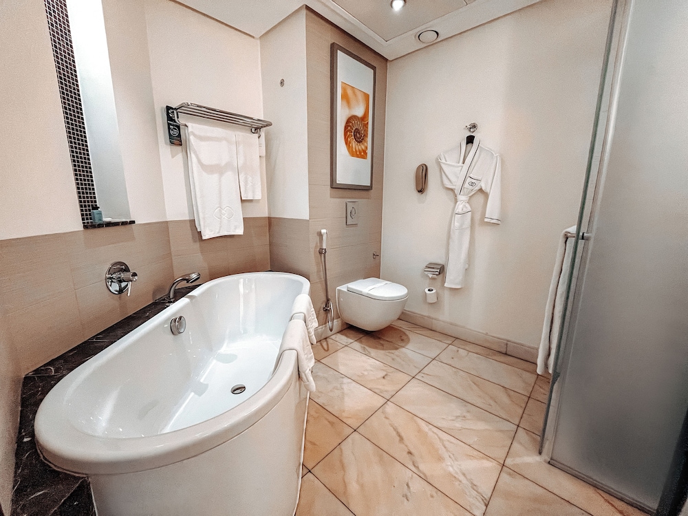 Sofitel Al Khobar The Corniche besticht durch eine zentrale Lage in Al Khobar, nur einen 4-minütigen Fußmarsch von Dugheither Freizeitinsel und 12 Gehminuten von Ajdan-Walk entfernt. Dieses Hotel für Familien ist 1,9 km von Al-Rahmaniyah Mall und 2,5 km von Khobar Corniche entfernt. Fühl dich in den 229 Zimmern, die individuell ausgestattet sind und Minibars (mit einigen kostenlosen Artikeln) und einen Smart-TV bieten, wie zu Hause. Dein Pillowtop Bett bietet Daunenbettdecken und italienische Bettbezüge von Frette. Ein WLAN-Internetzugang (kostenlos) ist ebenso verfügbar wie Satellitenempfang. Es sind eigene Badezimmer mit Badewannen und Duschen (separat) vorhanden, die Komfortbadewannen und Regenduschen bieten. Entfernungen werden bis auf 0,1 Kilometer gerundet.