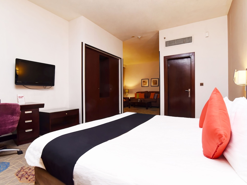 In Riad (Olaya (Finanzviertel)) gelegen, ist Mena Hotel Riyadh nur eine 10-minütige Fahrt von National Museum of Saudi Arabia (Nationalmuseum) und Al-Batha-Markt entfernt. Dieses Hotel ist 8 km von Sahara Mall und 8,6 km von Zoo Riad entfernt. Fühl dich in einem der 168 Zimmer, die Kühlschrank und einen LCD-Fernseher bieten, wie zu Hause. Es gibt einen kostenfreien Internetzugang per Kabel und WLAN sowie Kabelempfang. Es sind eigene Badezimmer mit Duschwannen vorhanden, die über kostenlose Toilettenartikel und Haartrockner verfügen. Zur Austattung gehören Telefone ebenso wie Safes und Schreibtische. Entfernungen werden bis auf 0,1 Kilometer gerundet.