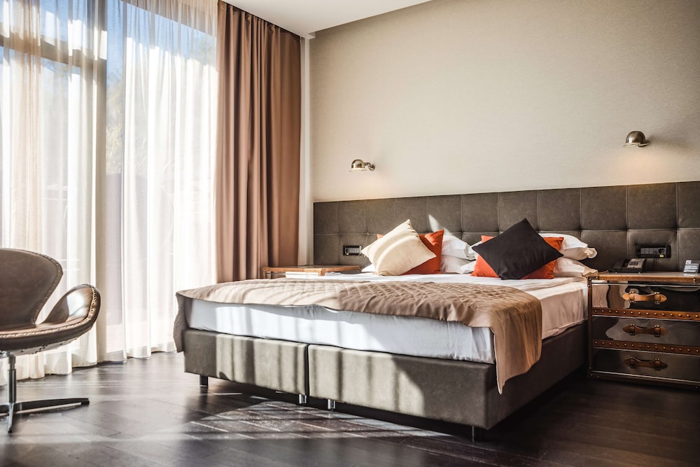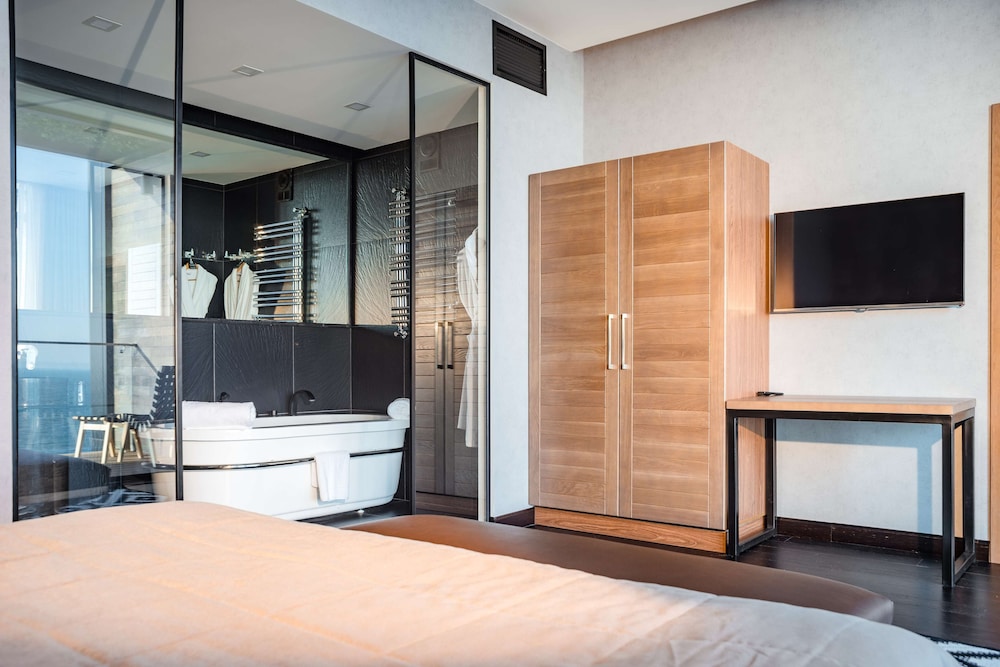 M1 Club Hotel besticht durch eine zentrale Lage in Odessa, nur 10 Gehminuten von Lanzheron-Strand und Shevchenko Park entfernt. Dieses Hotel in Strandnähe ist 3,2 km von Zentralstadion Tschornomorez und 3,3 km von Deribasovskaya Straße entfernt. Fühl dich in einem der 68 klimatisierten Zimmer mit Minibar und Flachbildfernseher wie zu Hause. Ein WLAN-Internetzugang (kostenlos) ist ebenso verfügbar wie Satellitenempfang. Es gibt eigene Badezimmer mit Badewannen oder Duschen, die über Regenduschen und Designer-Toilettenartikel verfügen. Zur Austattung gehören Telefone ebenso wie Safes und Schreibtische. Entfernungen werden bis auf 0,1 Kilometer gerundet.