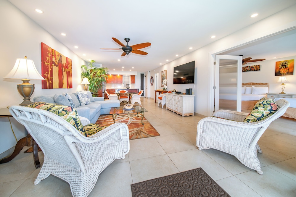 Kaanapali Maui at the Eldorado by OUTRIGGER in Kaanapali liegt in der Nähe eines Golfplatzes, höchstens 15 Gehminuten von Kaanapali Beach und Whalers Village entfernt. Diese Ferienwohnung mit Golfplatz ist 11 km von Napili Bay und 0,2 km von Skyline Eco Adventure entfernt. Fühl dich in einem der 54 Zimmer, die individuell ausgestattet sind und Küchen bieten, die über große Kühlschränke/Gefrierfächer und Öfen verfügen, wie zu Hause. Die Zimmer haben eigene Lanais (Verandas). 32 Zoll groáe LCD-Fernseher mit Kabelempfang sorgen fr gute Unterhaltung; auáerdem steht ein WLAN-Internetzugang (kostenlos) zur Verfgung. Zur Austattung gehören Telefone ebenso wie separate Sitzecken und Mikrowellen. Entfernungen werden bis auf 0,1 Kilometer gerundet.