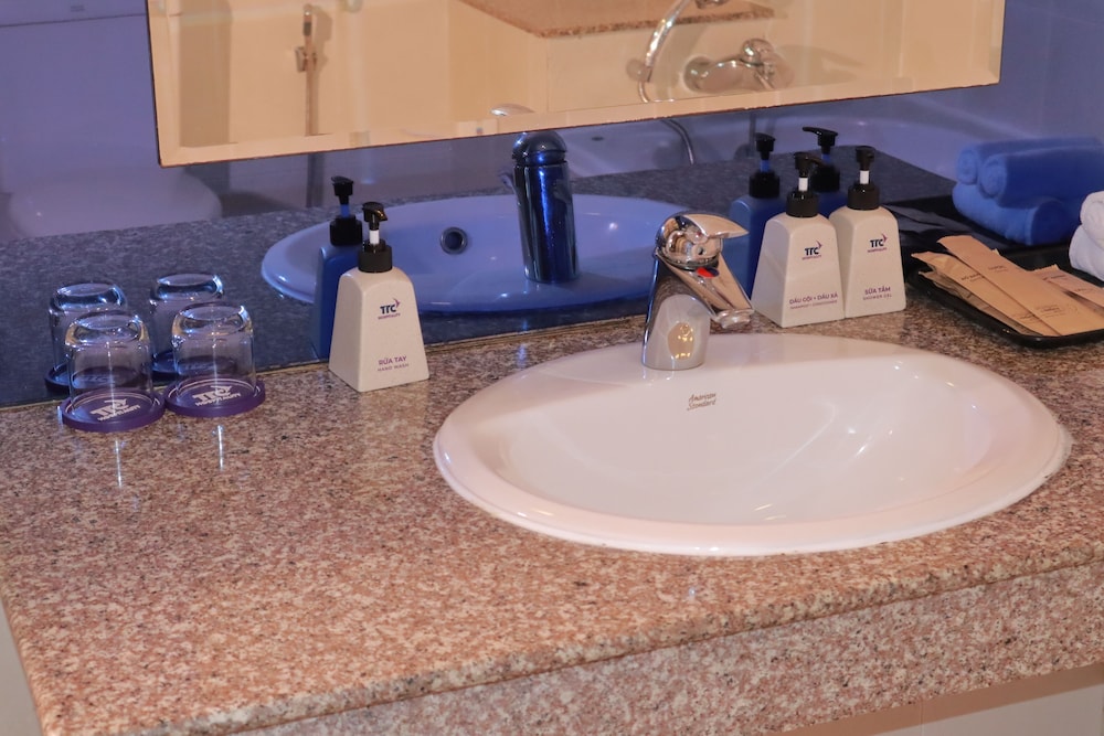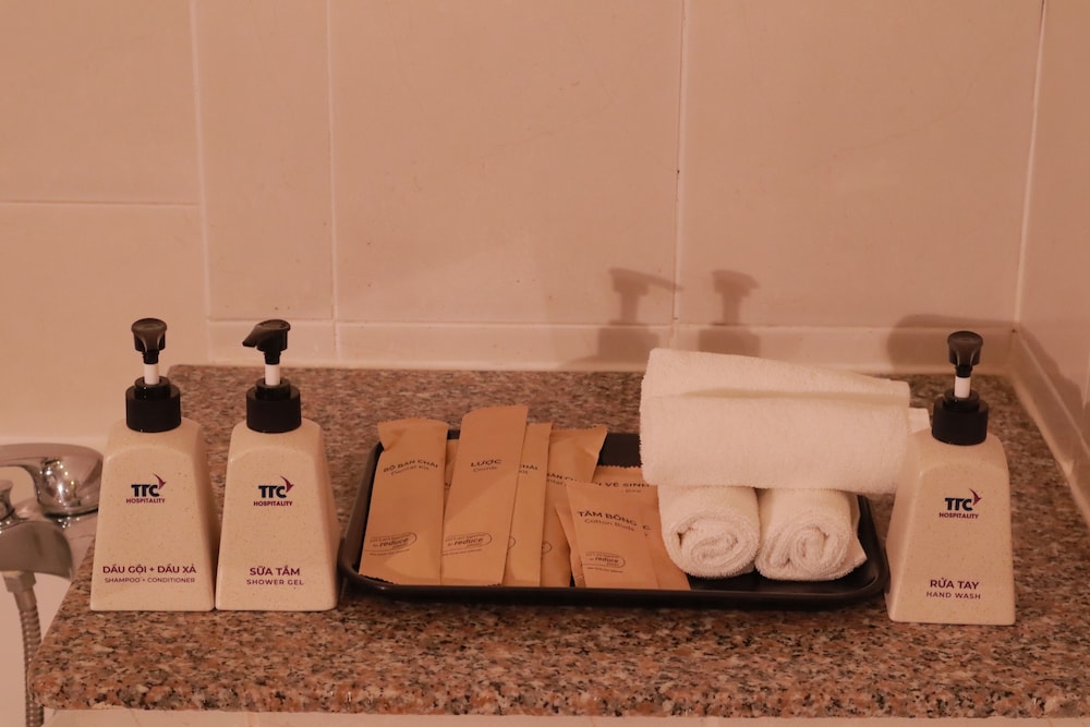 TTC Hotel - Phan Thiet in Phan Thiet liegt in Strandnähe, nur eine 5-minütige Fahrt von Ho Chi Minh Museum und Van Thuy Tu-Tempel entfernt. Dieses Hotel für Familien ist 6,7 km von Turm Poshanu Cham und 8,6 km von Rote Dünen entfernt. Fühl dich in einem der 180 klimatisierten Zimmer mit Minibar und LCD-Fernseher wie zu Hause. Ein WLAN-Internetzugang (kostenlos) ist ebenso verfügbar wie Kabelempfang. Es gibt eigene Badezimmer mit Badewannen und Duschen (separat), die über Regenduschen und kostenlose Toilettenartikel verfügen. Zur Austattung gehören Telefone ebenso wie Safes und Schreibtische. Entfernungen werden bis auf 0,1 Kilometer gerundet.