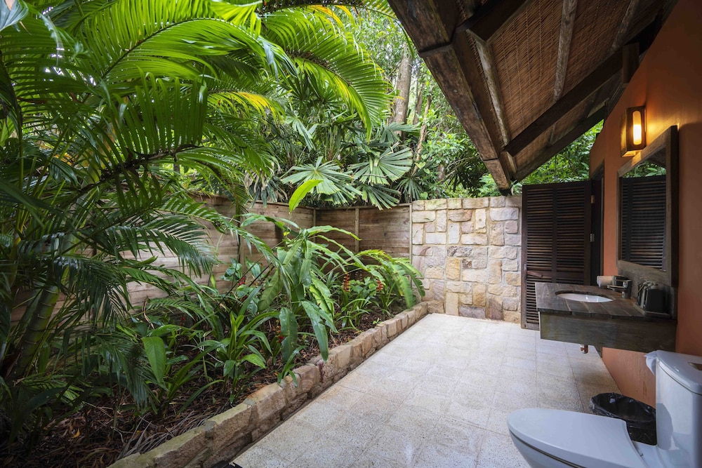 Mango Bay Resort in Phú Quốc liegt am Strand, nur eine 15-minütige Fahrt von Nachtmarkt von Phu Quoc und San Van Dong Duong Dong Stadium entfernt. Dieses Resort in Strandnähe ist 13,6 km von Strand von Phu Quoc und 14,9 km von VinWonders Phu Quoc entfernt. Fühl dich in einem der 44 Zimmer wie zu Hause. Ein WLAN-Internetzugang (kostenlos) steht zur Verfügung. Die Badezimmer bieten Duschen, kostenlose Toilettenartikel und Hausschuhe. Zur Austattung gehören Telefone ebenso wie Safes und Deckenventilatoren. Entfernungen werden bis auf 0,1 Kilometer gerundet.