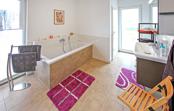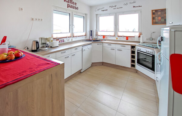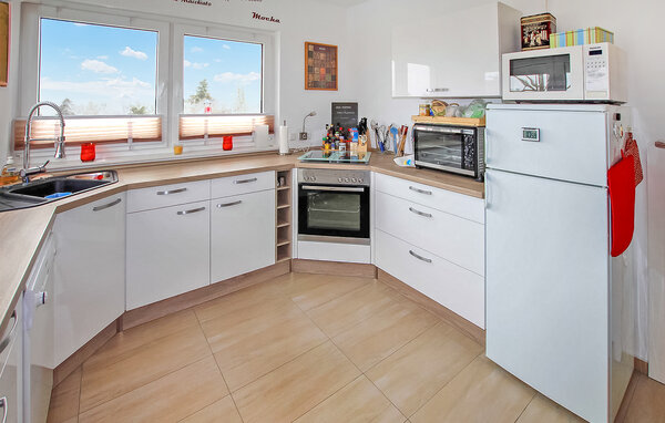 Das großzügig und komfortabel eingerichtete ca. 150 qm große Nichtraucherhaus verfügt über einen Wohnraum mit Sitz- und Essbereich (jeweils Polstermöbel und Couch- bzw. Esstisch, Flachbild-TV, CD/ DVD-Player, Radio) und angeschlossener offener, komplett ausgestatteter Küche (Ess-Theke, Backofen, Mini-Backofen, E-Herd, Geschirrspüler, Mikrowelle, Kühlschrank, Gefriermöglichkeit, div. Küchenkleingeräte), zwei Schlafräume (jeweils Doppelbett) mit dazu gehörenden Bädern (1 x mit DU/WZ, 1 x mit DU/Wanne und gesondertem WC) sowie über einen geräumigen Flur. Das gesamte Haus ist mit Fußbodenheizung und einer modernen Lüftungsanlage ausgestattet.
