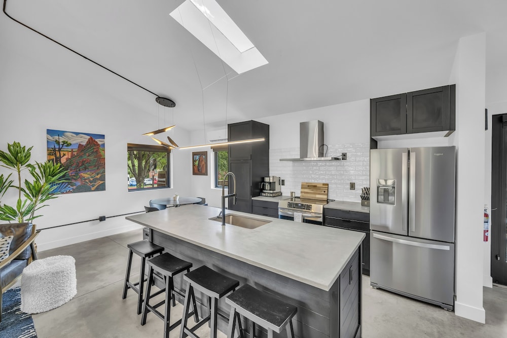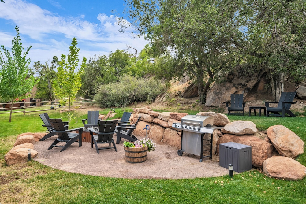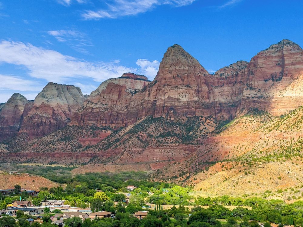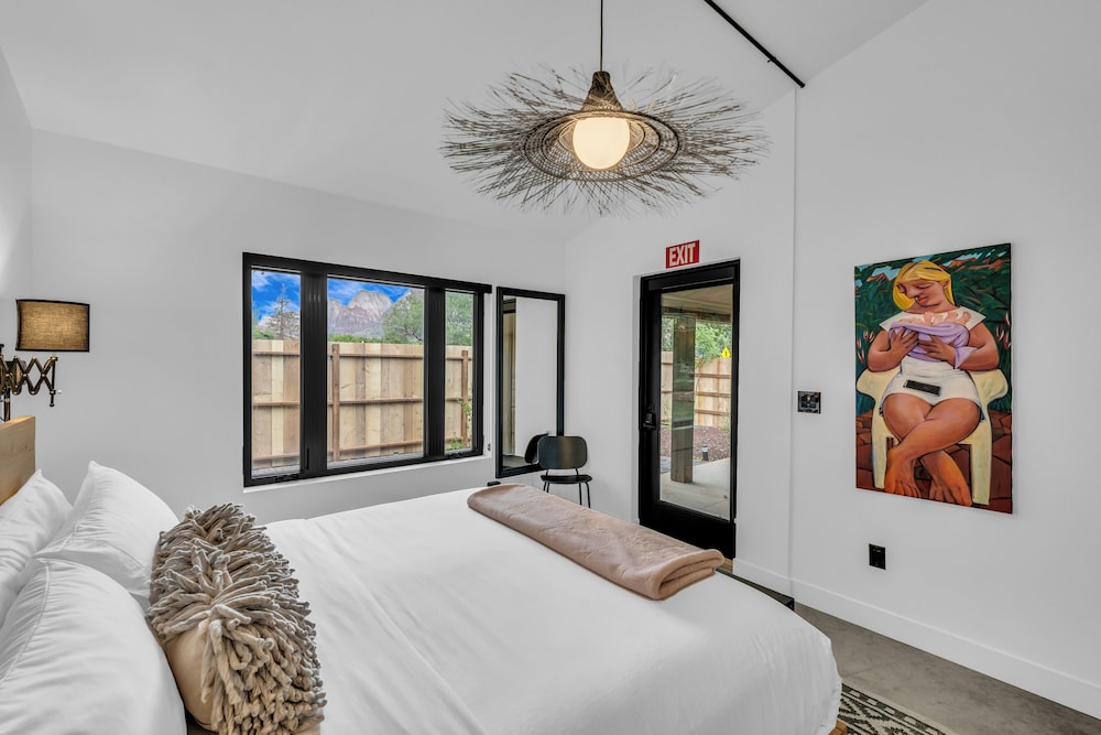 Canyon Casitas at Zion in Springdale liegt im Nationalpark, 5 Minuten Fahrt von Zion-Nationalpark und Zion-Nationalpark, Süd-Eingang entfernt. Diese Villa ist 2,9 km von Zion Canyon Visitor Center und 20,9 km von Zion-Nationalpark, Ost-Eingang entfernt. Fühl dich in einem der 5 klimatisierten Zimmer, die Küchen bieten, die über große Kühlschränke/Gefrierfächer und Öfen verfügen, wie zu Hause. Die Zimmer sind mit Pillowtop-Betten ausgestattet. WLAN-Internetzugang (kostenlos) und Flachbildfernseher sorgen für Unterhaltung. Zu den Highlights gehören Mikrowellen und Wasserkocher mit Kaffee-/Teezubehör. Entfernungen werden bis auf 0,1 Kilometer gerundet.
