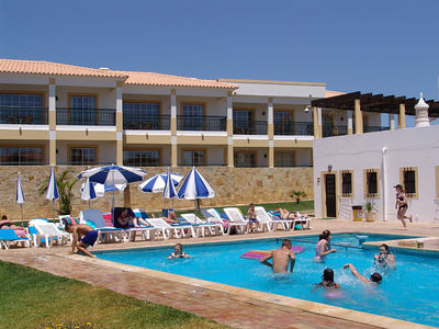 Located in Albufeira, in the very heart of the Algarve, the Apartments Novochoro has all the conditions to offer you unforgettable vacations, spent on a peaceful and well acquainted environment. Allowing moments of privacy and relaxation, you can still enjoy the snack-bar area and swimming pool while your children play in the children's playground. Divided in two distinct blocks - Shell and Star - the Novochoro has to offer you 31 apartments ( T0, T1 and T2 ), fully equipped with Satellite T.V, electric oven, microwave oven, electric kettle, among others. The Star Apartments, Standard, are the initial set of the Novochoro development, where you can meet the required conditions in order to spend your vacations in a rustic and comfortable environment. These apartments are equipped with Kitchenette, where you can enjoy, on the most of them, of a shared balcony. The Shell Apartments, Superior, are the most recent block of this development, decorated in a very welcoming way and equipped in a modern style, including a full kitchen. You also enjoy of the view through its wide and individual balconies.