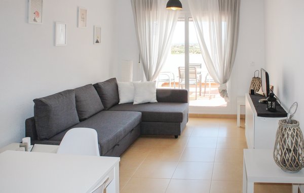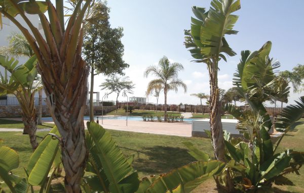 Praktisches und feriengerecht ausgestattetes Apartment mit Klimaanlage im Wohnzimmer und schöner Terrasse mit Aussicht auf den wenige Meter entfernten Golfplatz. Mit gemeinschaftlichem Poolbereich.