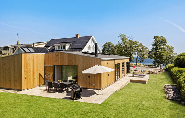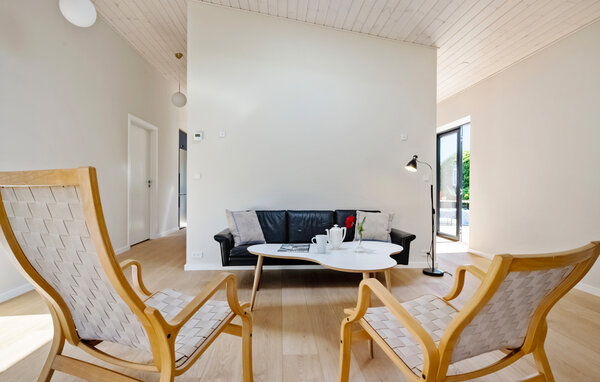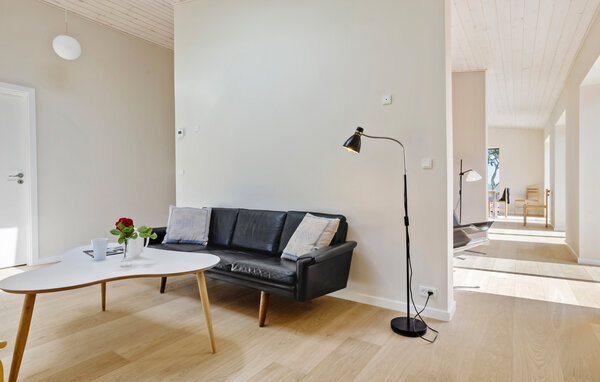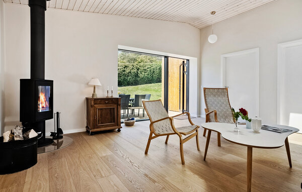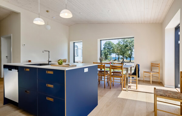 Verbringen Sie eine erholsame Auszeit in diesem von einem Architekten entworfenen Ferienhaus mit Meerblick auf Bornholm. Das Haus liegt in unmittelbarer Nähe zur Küste und bietet eine gelungene Kombination aus schlichter skandinavischer Eleganz und wohnlicher Atmosphäre. Der Innenraum ist offen und modern gestaltet. Entspannen Sie auf dem Sofa vor dem Kaminofen oder planen Sie den Tag in der gemütlichen Sitzecke mit Blick ins Grüne. Die stilvolle Wohnküche fügt sich elegant in den Raum ein und lädt zu geselligen Kochabenden ein. Große Fensterfronten durchfluten das Haus mit Tageslicht und geben immer wieder den Blick auf das Meer frei.