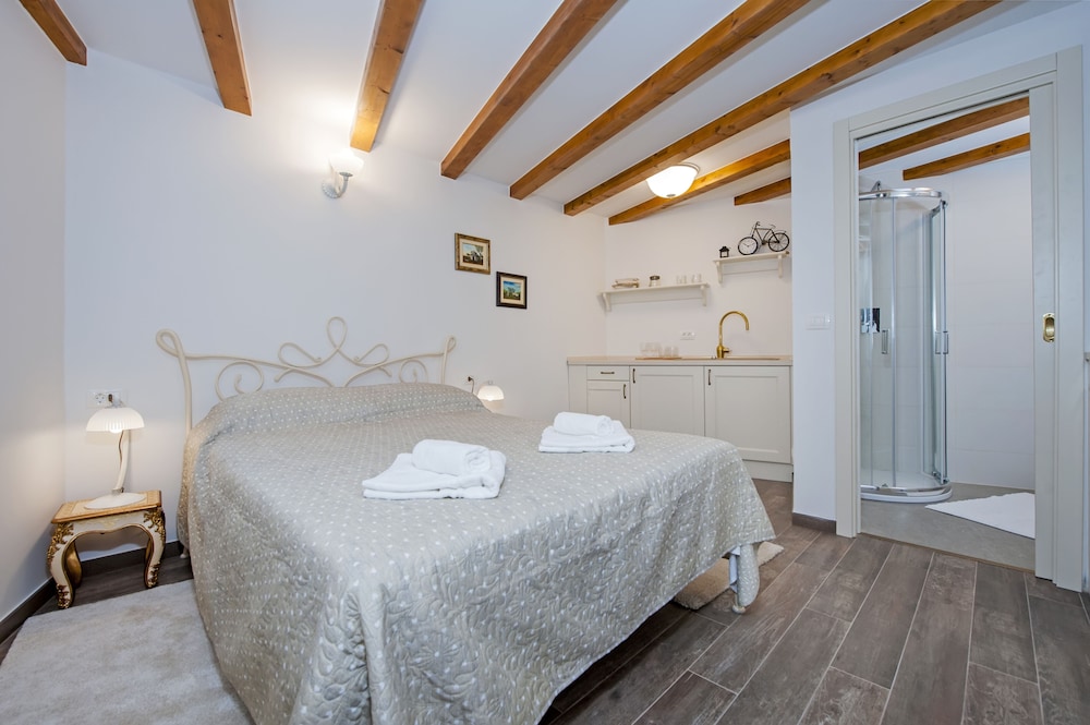 Villa San Benedetto in Rovinj (Altstadt Rovinj) ist nur wenige Schritte entfernt von: Batana-Museum und Straße Grisia. Dieses Apartment ist 0,1 km von Hafen von Rovinj und 0,1 km von Maršala-Tita-Platz entfernt. Fühl dich in einem der 4 klimatisierten Zimmer, die Kochnischen bieten, wie zu Hause. 50 cm groáe Flachbildfernseher mit Satellitenempfang sorgen fr gute Unterhaltung; auáerdem steht ein WLAN-Internetzugang (kostenlos) zur Verfgung. Zu den Highlights gehören Kühlschränke und Wasserkocher mit Kaffee-/Teezubehör. Auf Wunsch erhältst du außerdem Folgendes: Babybetten (kostenlos). Entfernungen werden bis auf 0,1 Kilometer gerundet.
