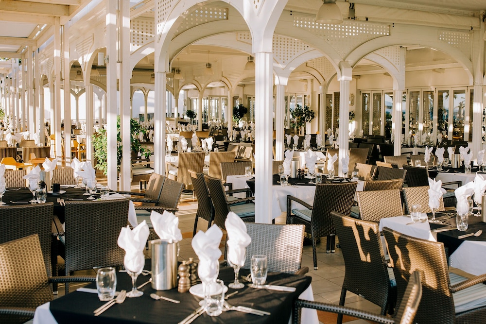 Zum Angebot gehören ein Businesscenter, ein Limousinenservice und kostenlose Zeitungen in der Lobby. Wenn du eine Veranstaltung in Andravida-Kyllini planst, ist dieses Hotel eine gute Wahl, denn zu den 6458 Quadratfuß (600 Quadratmeter) großen Veranstaltungsräumlichkeiten zählen Konferenzfläche und 7 Tagungsräume. Ein Abholservice vom Bahnhof (rund um die Uhr) wird kostenlos angeboten. Außerdem findet sich Folgendes vor Ort: Parken ohne Service (kostenlos). Entspann dich im Wellnessbereich, der Massagen, Körperbehandlungen und Gesichtsbehandlungen bietet. Sicher wirst du die Freizeiteinrichtungen zu schätzen wissen, zu denen Folgendes gehört: 4 Außenpools, Nachtclub und Tennisplätze im Freien. Weitere Highlights, die dieses Hotel im mediterranen Stil bietet, sind kostenloses WLAN, ein Concierge-Service und Babysitting (kostenlos). Lass den Tag bei einem Drink an der Bar/Lounge oder Poolbar ausklingen. Ein inbegriffenes Frühstücksbuffet wird täglich von 07:30 Uhr bis 11:00 Uhr angeboten.Du wirst gebeten, die folgenden Gebühren direkt in der Unterkunft zu zahlen. Gebühren beinhalten möglicherweise geltende Steuern: