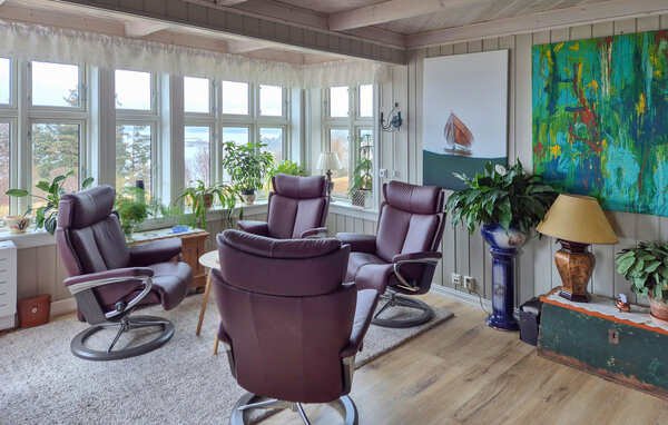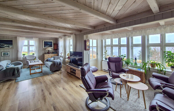 Dieses komfortable und geschmackvoll eingerichtete Urlaubsdomizil verwöhnt Sie mit viel Platz und einem traumhaften Panoramablick, den Sie nicht vergessen werden. Freuen Sie sich auf gesellige Kochabende in der geräumigen Küche und harmonische Mahlzeiten am einladenden Esstisch. Legen Sie nach einem langen Tag an der frischen Seeluft die Füße auf dem Lesesessel hoch, streamen Sie einen Film oder lauschen Sie bei guten Gesprächen dem behaglichen Knistern des Kaminofens.