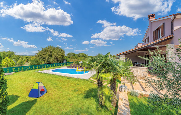 Nicht weit vom Stadtzentrum von Bale entfernt, auf einem umzäunten Grundstück, befindet sich dieses schöne Ferienhaus. Die stilvollen und Geschmackvoll eingerichteten Innenräume befinden sich im Erdgeschoss und der ersten Etage. Vor dem Haus befindet sich eine geräumige überdachte Terrasse, die sich ideal zum Entspannen sowie zum Spielen eignet, da es Darts und Tischfußball gibt. Erfrischen Sie sich im Pool und entspannen Sie Körper und Seele, während Sie sich auf bequemen Sonnenliegen ausruhen. Für Tagesausflüge empfehlen wir einen Besuch der Städte Pula, Rovinj und Poreč, die zahlreiche Sommerveranstaltungen für alle Altersgruppen bieten, sowie eine Besichtigung der Brijuni-Inseln, die Sie mit ihren Naturschönheiten begeistern wird.