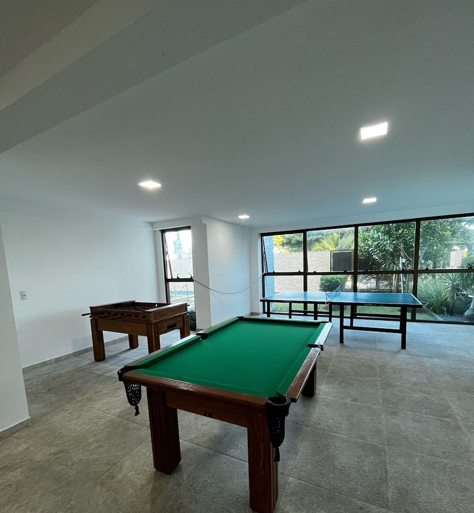 Dieses Apartment in Jaboatão dos Guararapes (Barra de Jangada) ist nur 15 Autominuten entfernt von: Strand von Barra de Jangada und Ponte Arquiteto Wilson Campos Junior. Dieses Apartment im luxuriösen Stil ist 8,4 km von Strand von Boa Viagem und 1,6 km von Praia de Candeias (Strand) entfernt. Mach es dir in diesem Apartment mit Klimaanlage gemütlich. In der Küche, die über einen großen Kühlschrank mit Gefrierfach und eine Mikrowelle verfügt, wirst du dich wie zu Hause fühlen. Dieses Apartment verfügt über ein Bett mit Pillowtop-Matratze. Ein 50-Zoll-Smart-TV mit Digitalempfang sorgt für deine Unterhaltung, während du von dem WLAN-Internetzugang (kostenlos) profitieren kannst, um mit Freunden und Familie in Kontakt zu bleiben. Vor Ort findest du jeglichen Komfort, darunter einen Schreibtisch und eine separate Sitzecke. Entfernungen werden bis auf 0,1 Kilometer gerundet.