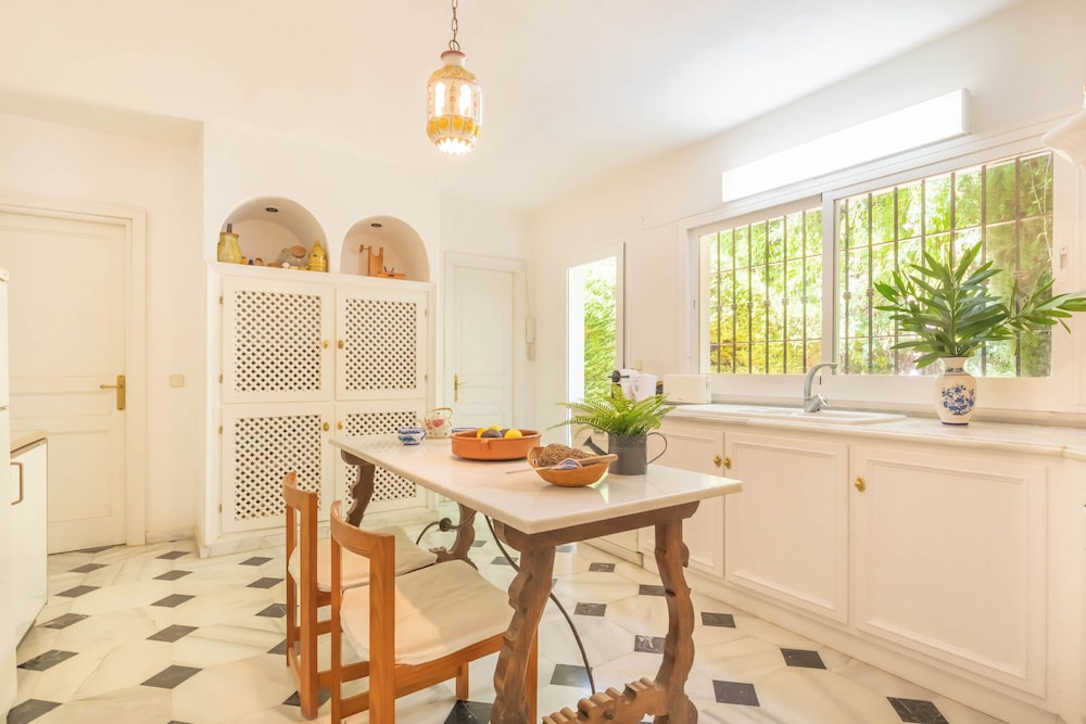Diese Villa in Benahavis (Neue Goldene Meile) ist nur 15 Minuten Fahrt von Strand von Estepona und Strand von Puerto Banús entfernt. Diese Villa ist 12,4 km von Yachthafen Puerto Banús und 19,2 km von Marina Marbella entfernt. Diese Villa mit Klimaanlage verfügt nicht nur über einen Privatpool, sondern ist mit einem Smart-TV ausgestattet und bietet dir somit alles für einen perfekten Aufenthalt. Die Küche verfügt über einen Kühlschrank, einen Ofen und eine Herdplatte. Um in Verbindung mit den Daheimgebliebenen zu bleiben, steht dir ein WLAN-Internetzugang (kostenlos) zur Verfügung, während für deine Unterhaltung dank der breiten Auswahl an Kanälen per Kabelempfang gesorgt ist. Vor Ort findest du jeglichen Komfort, darunter eine Mikrowelle und einen Wasserkocher mit Kaffee-/Teezubehör. Entfernungen werden bis auf 0,1 Kilometer gerundet.