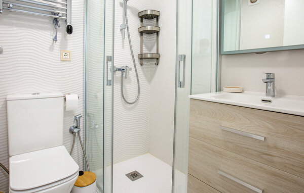 Die helle und geschmackvoll gestaltete Ferienwohnung mit Ambiente lädt zum Entspannen ein. Die Unterkunft ist in Creme und Weiβ gehalten und wirkt wohnlich warm. Hier werden Sie sich zweifellos wohlfühlen. Öffnen Sie die Glasschiebetüren im Wohnraum und lassen Sie sich von dem Panoramablick auf das Meer verzaubern. Nach dem Frühstücken können Sie in den Gemeinschaftspool springen, möchten Sie aber eine kleine Pause vom Pool, gehen Sie einfach die wenige Schritte zum Strand.