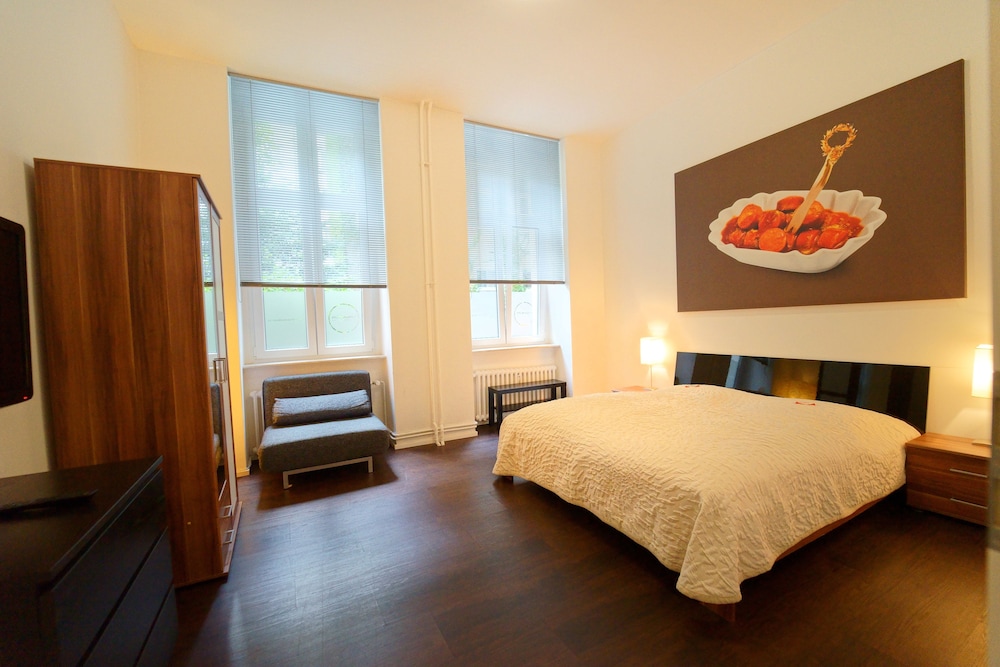 Planet Berlin City Apartments in Berlin (Charlottenburg-Wilmersdorf) ist nur 5 Minuten Fahrt entfernt von: Kurfürstendamm und Zoo Berlin. Dieses Apartment ist 4,3 km von Potsdamer Platz und 7,9 km von Alexanderplatz entfernt. Fühl dich in einem der 4 Zimmer, die Kühlschrank und einen Flachbildfernseher bieten, wie zu Hause. Ein WLAN-Internetzugang (kostenlos) ist ebenso verfügbar wie Kabelempfang. Die Badezimmer bieten Duschen und Haartrockner. Zur Austattung gehören Wasserkocher mit Kaffee-/Teezubehör und kostenloses Mineralwasser; die Zimmer werden wöchentlich sauber gemacht. Entfernungen werden bis auf 0,1 Kilometer gerundet.