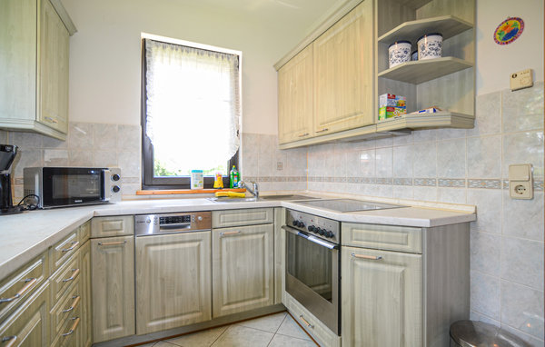 Die vollausgestattete Küche lässt auch hier keine Wünsche offen. Auf Anfrage können eine Waschmaschine und ein Trockner, die sich im Keller befinden, genutzt werden. Ebenfalls auf Anfrage haben Sie die Möglichkeit, die Sauna zu nutzen, die durch einen Zugang der Hauseigentümerwohnung zu erreichen ist.