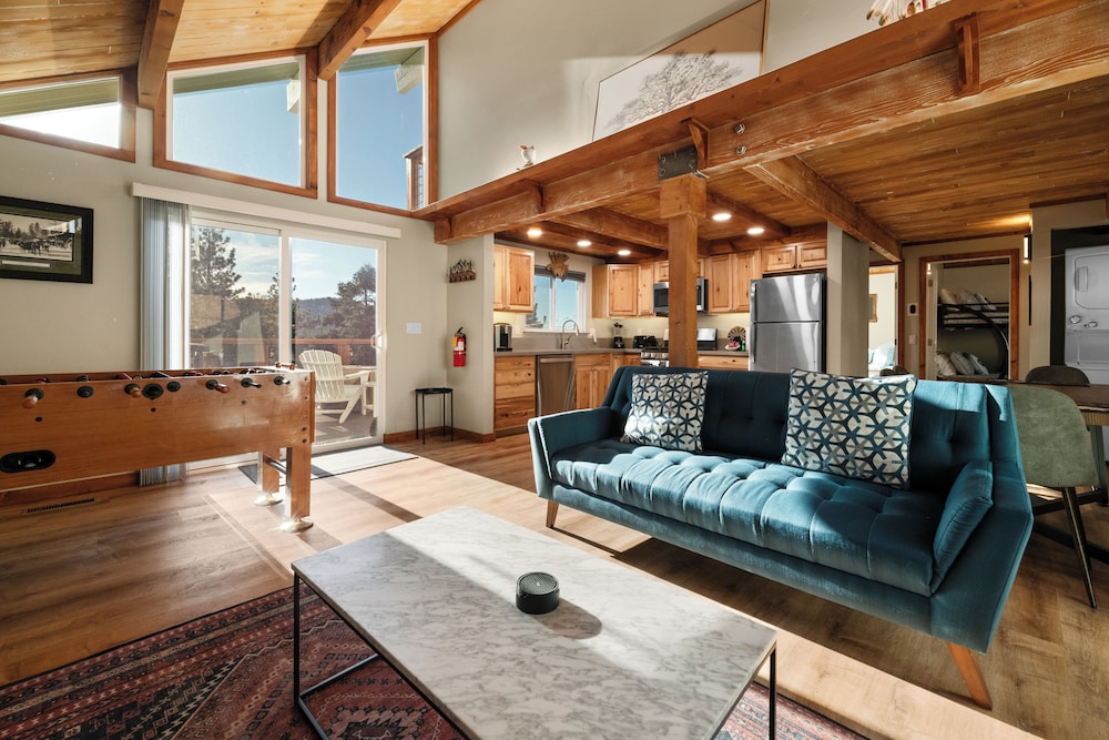 Diese Ferienhütte in Big Bear Lake (Moonridge) ist eine 3-minütige Fahrt von Big Bear Mountain Resort und 8 Autominuten von Snow Summit entfernt. Diese Ferienhütte ist 7 km von The Village und 24,7 km von Snow Valley Mountain Resort entfernt. Diese Ferienhütte ist mit einem DVD-Player und einem Flachbildfernseher ausgestattet, sodass es dir an nichts fehlt. Mit dem WLAN-Internetzugang (kostenlos) bleibst du auch während deines Aufenthalts in Verbindung. Vor Ort findest du jeglichen Komfort, darunter einen Wasserkocher und eine Waschmaschine. Entfernungen werden bis auf 0,1 Kilometer gerundet.