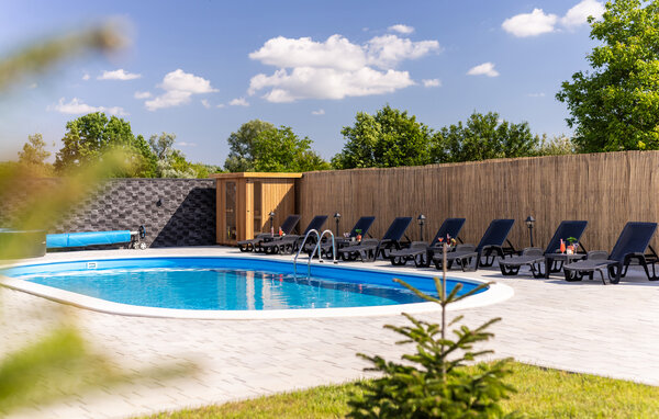 Entfliehen Sie dem Stadtleben und dem Treiben der Adriaküste und verbringen unweit von Osijek einen erholsamen Urlaub in diesem großartig ausgestatteten Ferienhaus. Auf zwei Etagen können Sie sich dank des Designs und der hochwertigen Einrichtung wie zuhause fühlen. Kochen, essen und spielen Sie im Erdgeschoss oder trinken Ihren Morgenkaffee auf Ihrer privaten Veranda. Ihre Kinder können währenddessen im Gemeinschaftsgarten spielen oder im Gemeinschaftspool baden und die Ferientage mit neuen Freundschaften verbringen.