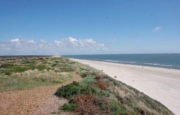 Die Terrassen des Hauses sind von den Dünen abgeschirmt, deshalb können Sie sich draußen ungestört aufhalten. Das Haus liegt auf einem Dünengrundstück im attraktivsten Teil Blåvands, nahe dem Leuchtturm und nur 300 m vom Strand entfernt. Meerblick über die Nordsee von den Dünen auf dem Grundstück. Pfad vom Haus zum Strand.