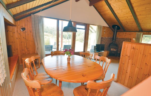 Viel Holz und eine gemütliche Beleuchtung schaffen reichlich Behaglichkeit in diesem einladenden Ferienhaus. Genießen Sie gemeinsame Kochabende in der gut ausgestatteten Küche und entspannen Sie nach langen Ausflügen im großzügigen Wohnbereich. Entfachen Sie den Kaminofen und lassen Sie den Tag bei einem Film oder einem Brettspiel ausklingen.
