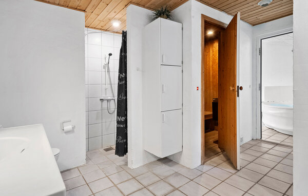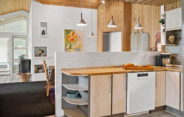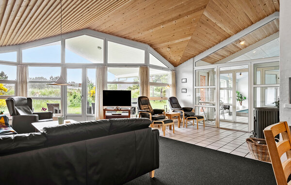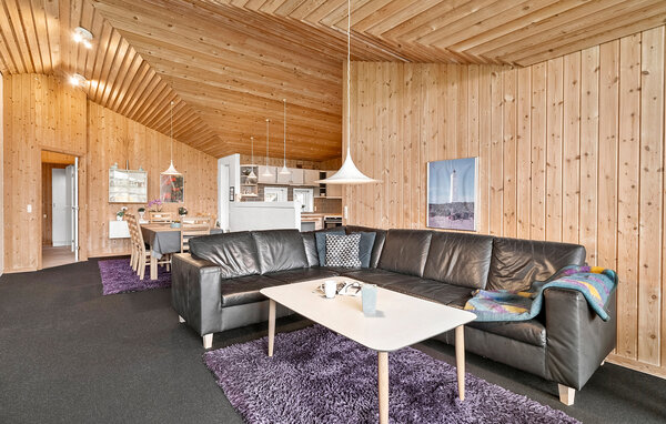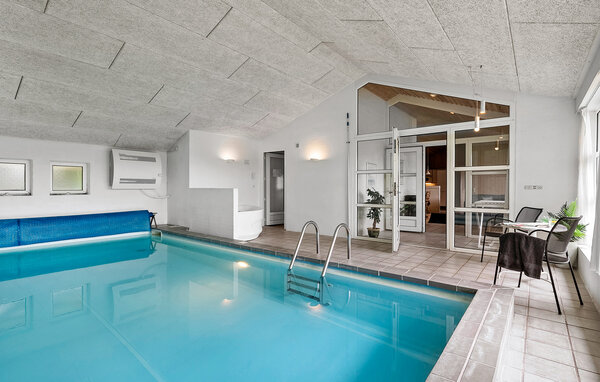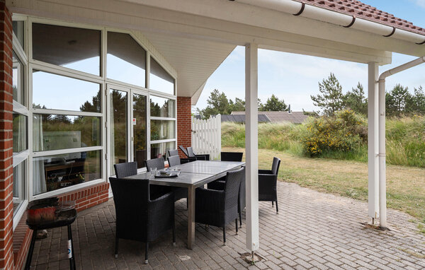 Großes, schönes Ferienhaus mit Pool, im Herzen der Stadt Blåvand. Das Haus ist geräumig eingerichtet, so dass alle Platz genug finden. Als Mittelpunkt des Hauses liegt das gemütliche Wohnzimmer, mit der Küche kombiniert, von wo die ganze Familie den verschiedenen Aktivitäten folgen kann. Wollen die Kinder im Pool baden, können ihre Aktivitäten vom Wohnzimmer aus durch die Fensterscheibe verfolgt werden. Draußen gibt es gute Terrassen; eine überdachte und eine geschlossene Terrasse, wo es mehr Windschutz zum ungestörten Sonnenbaden gibt. Die Kinder können auf dem schönen Grundstück spielen. Das Haus steht wenige Meter vom Zentrum der Stadt Blåvand entfernt, wo es viele Geschäfte und Restaurants gibt, und viele sind das ganze Jahr geöffnet.