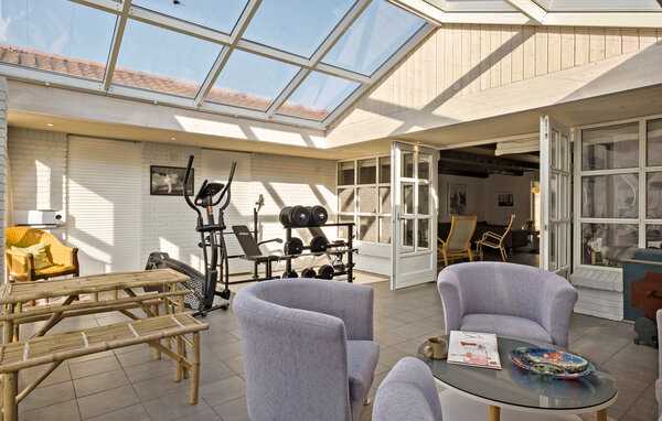 Verbringen Sie erholsame Tage in diesem einladenden Ferienhaus mitten in der Urlaubshochburg Blokhus. Hier erwartet Sie eine schöne Kombination aus Erholung und spannenden Aktivitäten, nahe der beeindruckenden Natur der dänischen Westküste. Lassen Sie den Alltag hinter sich und genießen Sie die gemütliche Atmosphäre dieses geräumigen Hauses, das ausreichend Platz für zwei Familien bietet. Die lichtdurchfluteten Räume schaffen eine angenehme Wohnatmosphäre. Machen Sie es sich auf den bequemen Sofas gemütlich, genießen Sie gemeinsame Mahlzeiten am langen Esstisch und entspannen Sie abends am knisternden Kaminofen. Auch der großzügige Wintergarten lädt zu geselligem Beisammensein ein und hält sogar einige Fitnessgeräte für Sie bereit.