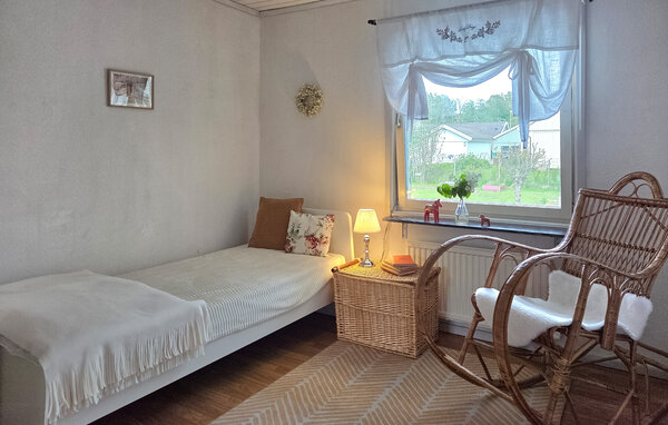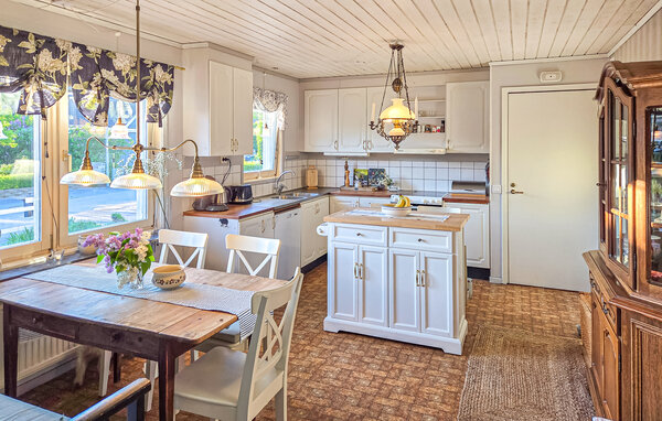 Genießen Sie einen erholsamen Aufenthalt in diesem freundlich eingerichteten Ferienhaus. Die ruhige Lage, der gepflegte Garten und die überdachte Terrasse bieten beste Bedingungen für entspannte Ferientage in Småland. Treten Sie ein in den großzügigen Wohnbereich mit bequemen Sofas, Kaminofen und großen Fenstern zum Garten. Nutzen Sie den Raum zum Lesen, Spielen oder um einfach zur Ruhe zu kommen. In der einladenden Küche mit Frühstückstresen und angrenzendem Essbereich bereiten Sie Ihre Mahlzeiten gemeinsam zu und genießen sie mit Blick ins Grüne. Für entspannte Momente steht Ihnen auch eine Sauna zur Verfügung.