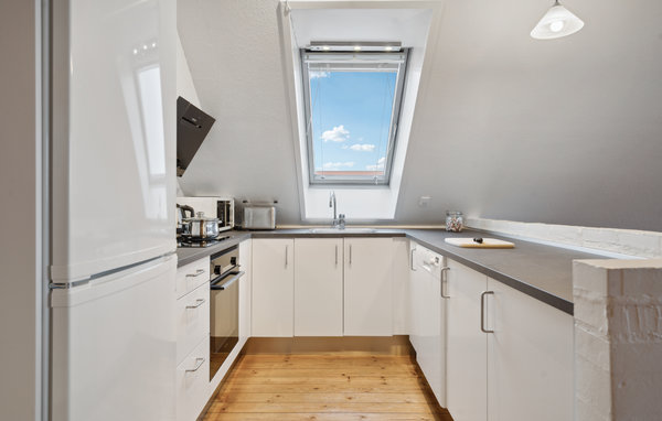 Wenn Sie Ihren Urlaub in erster Reihe, gleich am Wasser, verbringen möchten, dann sind Sie hier am richtigen Ort. Diese Ferienwohnung liegt in maritimer Umgebung des Sporthafens von Bogense. Aus der Wohnung und von der Terrasse können Sie die Aussicht über das Meer und die Marina genießen. Besonders im Sommer ist hier immer etwas los. Die Küche ist mit dem Ess- und Wohnzimmer verbunden, von wo aus Sie auf die Terrasse kommen. Es gibt eine kostenlose, schnurlose Internetverbindung.