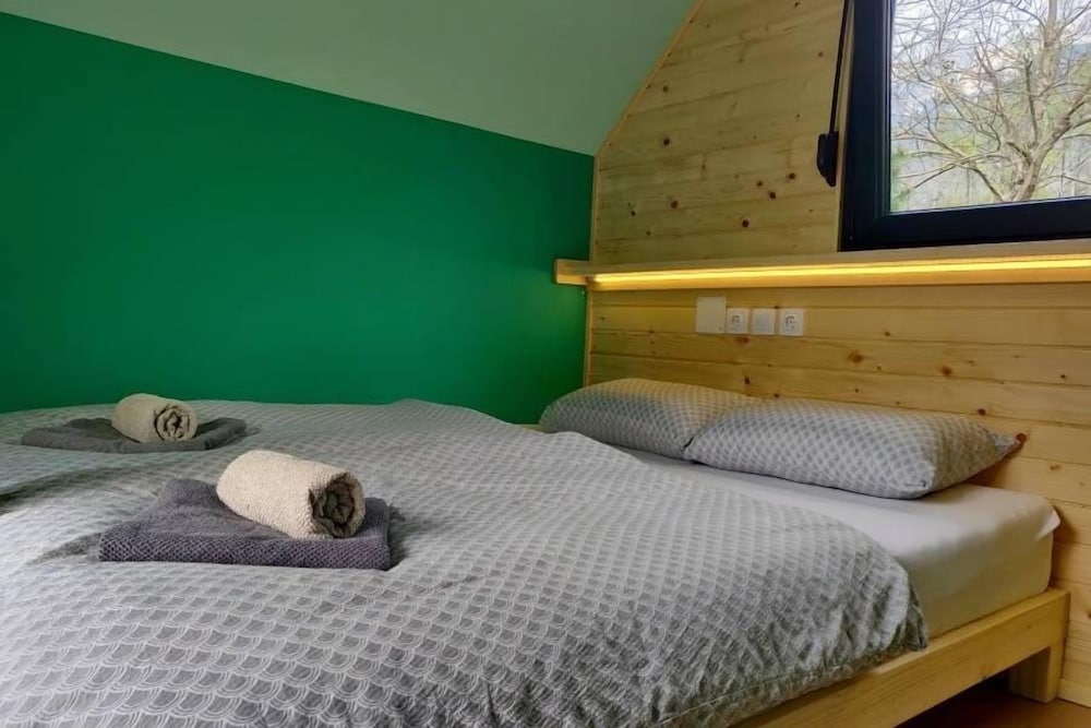 Glamping Virje in Bovec liegt in der Nähe eines Golfplatzes, nur wenige Schritte von Skigebiet am Kanin und Vogel-Seilbahn entfernt. Diese Ferienhütte mit Golfplatz ist 1,4 km von Bovec Sport Center und 1,5 km von Festung Kluže entfernt. Mach es dir in einem der 4 Zimmer, die individuell eingerichtet sind, gemütlich. Die Zimmer sind mit Memory-Foam-Betten ausgestattet. Ein WLAN-Internetzugang (kostenlos) steht zur Verfügung. Die Badezimmer bieten Duschen und Haartrockner. Entfernungen werden bis auf 0,1 Kilometer gerundet.