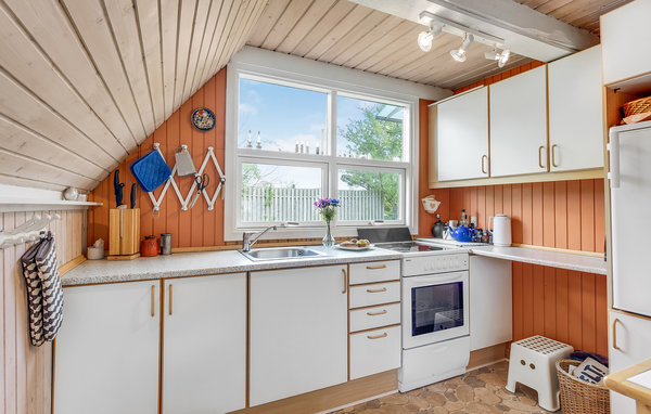 Dieses Nurdachhaus am gemütlichen Vemmingbund Strand bietet alles, was Sie für eine entspannte Auszeit benötigen. Das Haus ist ideal für eine kleine Familie oder Paare eingerichtet. Der Wohnbereich mit seinen hellen Holzwänden und großen Fenstern schafft eine behagliche Atmosphäre. Abends können Sie es sich am Kaminofen gemütlich machen, während Sie den Tag in Ruhe ausklingen lassen. Die einfache, aber funktionale Küche bietet alles, was Sie für die Zubereitung Ihrer Mahlzeiten benötigen.