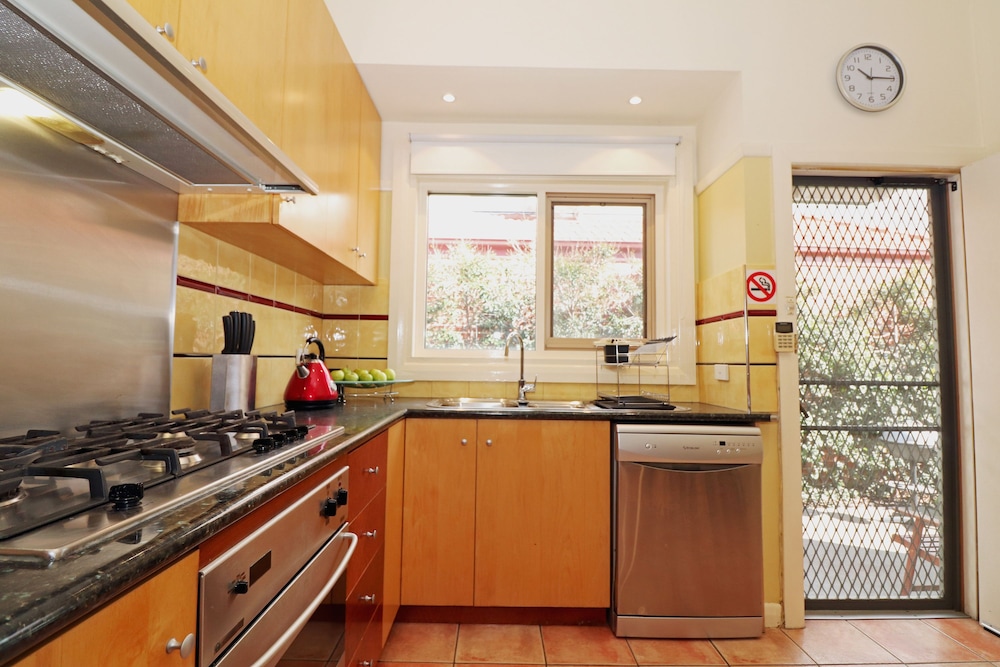 Dieses Ferienhaus besticht durch eine zentrale Lage in Melbourne, eine 4-minütige Fahrt von University of Melbourne und 7 Minuten von Melbourne Central entfernt. Dieses Ferienhaus ist 7,1 km von Marvel Stadium und 8,1 km von Rod Laver Arena entfernt. Mach es dir in diesem Ferienhaus mit Klimaanlage gemütlich. In der Küche, die über einen großen Kühlschrank mit Gefrierfach und einen Ofen verfügt, wirst du dich wie zu Hause fühlen. Dir stehen ein 50-Zoll-LED-Fernseher und ein DVD-Player zur Verfügung und mit dem WLAN-Internetzugang (kostenlos) bleibst du auch während deines Aufenthalts in Verbindung. Das eigene Badezimmer mit separater Badewanne und Dusche ist mit einem Whirlpool und kostenlosen Toilettenartikeln ausgestattet. Vor Ort findest du jeglichen Komfort, darunter eine Mikrowelle und einen Wasserkocher mit Kaffee-/Teezubehör. Auf Anfrage kann ein Babybett (kostenlos) zur Verfügung gestellt werden. Entfernungen werden bis auf 0,1 Kilometer gerundet.