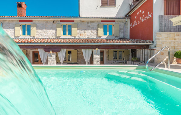Dieses wunderschön eingerichtete Ferienhaus mit Pool liegt in Plovanija, einem kleinen Dorf in der Nähe der Grenze zu Slowenien. Es bietet einen komfortablen Aufenthalt in der Atmosphäre von rustikalem und modernem Design. Erfrischen Sie sich und entspannen Sie im Pool, der mit Massagedüsen ausgestattet ist. Nur ein paar Schritte vom Haus entfernt, auf dem geschlossenen Grundstück des Hauseigentümers, stehen Kinderinhalte und es gibt auch einen schönen Obstgarten. Aktivurlauber werden von den vielen Wander- und Radwegen in der Umgebung begeistert sein. In der Nähe gibt es ein Casino und ein Restaurant. Besuchen Sie das nahe Umag, bekannt für seine internationalen Tennisturniere.