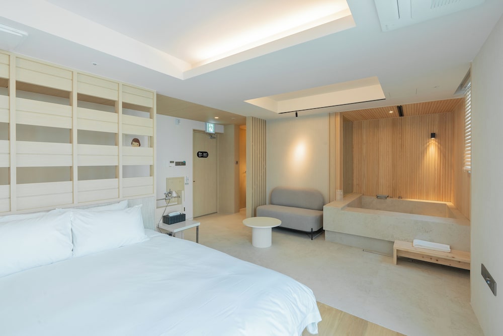 B'AMU Hotel & Spa in Busan (Suyeong-gu) ist nur wenige Schritte von Strand von Gwangalli und eine 3-minütige Fahrt von Shinsegae Centum City entfernt. Dieses Hotel ist 3,9 km von Strand von Haeundae und 8,4 km von Lotte Department Store Busan Hauptfiliale entfernt. Fühl dich in einem der 20 klimatisierten Zimmer, die über private Whirlpools im Inneren und einen Smart-TV verfügen, wie zu Hause. Ein WLAN-Internetzugang (kostenlos) ist ebenso verfügbar wie Kabelempfang. Zur Austattung gehören Safes und Schreibtische sowie Telefone, mit denen du kostenlose Ortsgespräche führen kannst. Entfernungen werden bis auf 0,1 Kilometer gerundet.