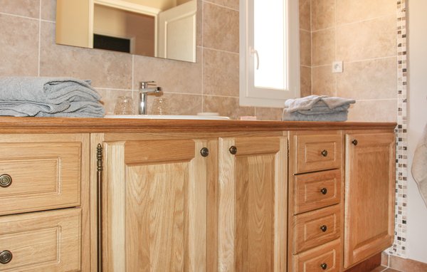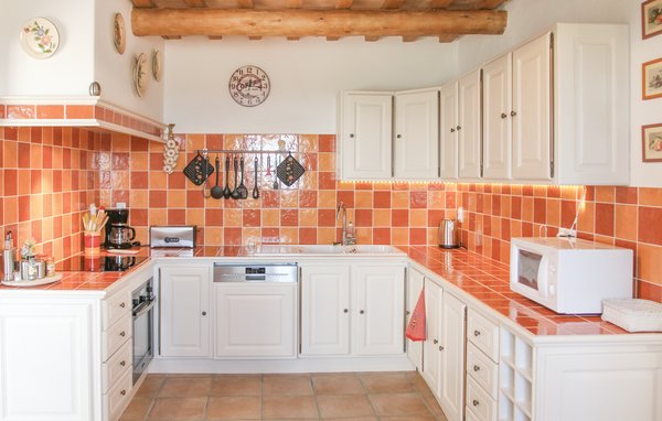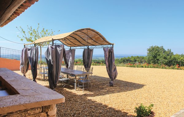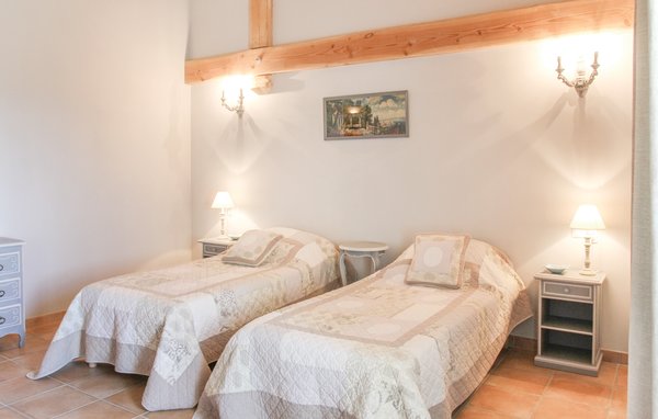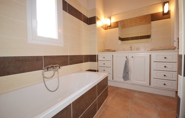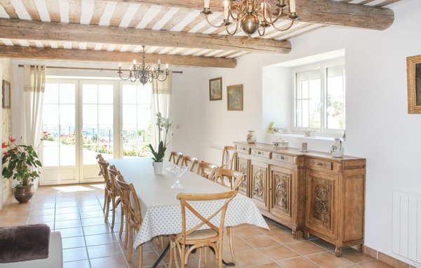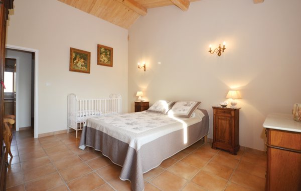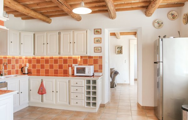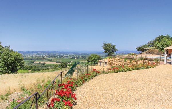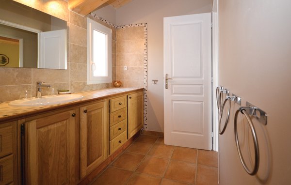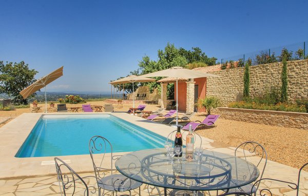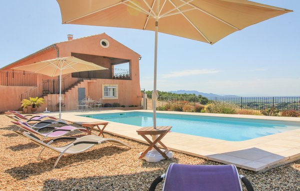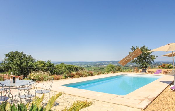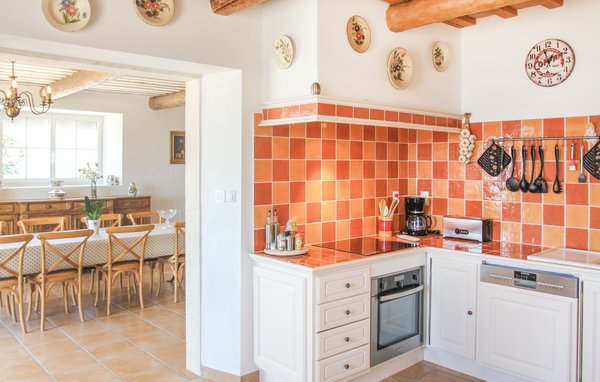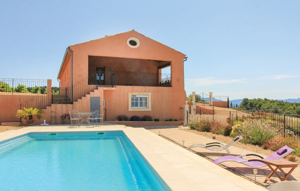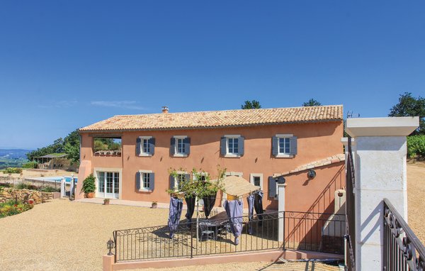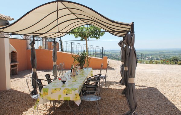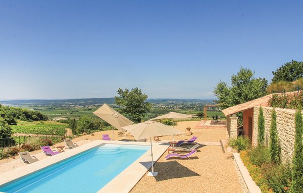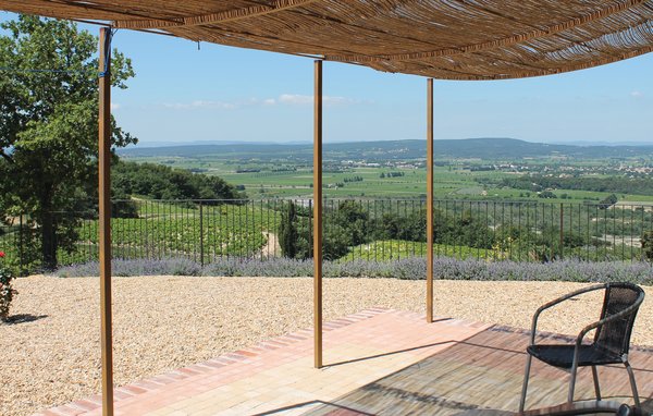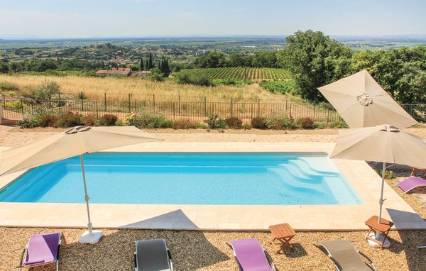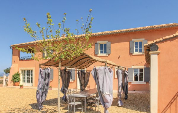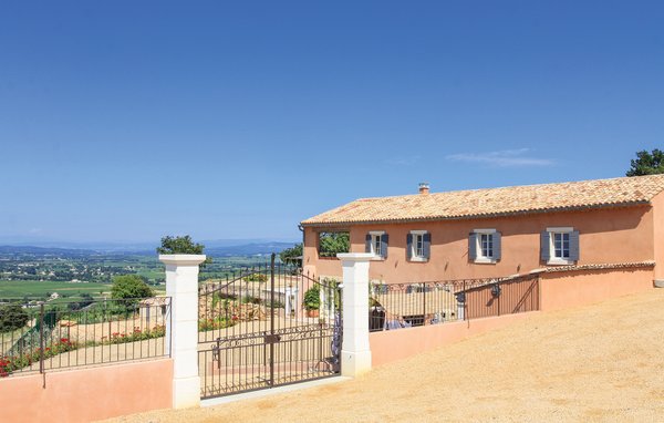 Wunderschönes Ferienhaus mit beheizbarem und sichtgeschütztem Privatpool. Gelegen in einem der renommiertesten Weinbaugebiete der Côtes du Rhône verwöhnt das Haus seine Gäste mit einem tollen Panorama auf Weinfelder. Mit seinen fünf Schlafzimmern bietet das Objekt ausreichend Platz für bis zu zehn Personen, die sich ebenfalls auf einen Privatpool freuen können. Das Anwesen, das seit Jahrhunderten stolz über einem Tal thront und dort von einer sehr ruhigen Lage profitiert, dient nach seiner gründlichen Renovierung nun ausschließlich als Feriendomizil. Das Objekt besticht durch eine raffinierte Einrichtung, und der eine Raum ist schöner als der andere. Freuen Sie sich ebenfalls auf eine komplett ausgestattete Sommerküche und einen schönen Grill. Nur 1 km Luftlinie trennt Sie von Cairanne, einem der schönsten Bergdörfer um den Mont Ventoux. Vom immensen Poolbereich mit Dusche und WC hat man zu jeder Jahreszeit einen atemberaubenden Blick auf die Umgebung, und Sie müssen hier keine fremden Blicke befürchten. Das Gefühl, ganz allein auf der Welt zu sein, hat man auch auf der weitläufigen, überdachten Terrasse, auf die man über das Obergeschoss gelangt. Genießen Sie von hier den Blick auf Cairanne, die Dentelles de Montmirail mit ihren bizarr geformten Bergkämmen und Orange, bekannt für eine Reihe römischer Bauwerke. Zehn Sonnenliegen und ein wunderschöner Pool, der auf Anfrage beheizt werden kann, runden dieses gleichermaßen für große und kleine Urlauber ansprechende Angebot ab. Auf Anfrage können Ihnen die Vermieter bis zu drei Hochstühle und vier Kinderbetten zur Verfügung stellen. Châteauneuf-du-Pape, Rasteau, Beaumes-de-Venise, Vaison-la-Romaine, Séguret und Avignon sind nur ein paar Beispiele für die vielen sehenswürdigen Orte, die dieser Teil der Provence bietet. Dieses tolle Ferienhaus mit Pool ist mit Garantie genau nach Ihrem Geschmack.