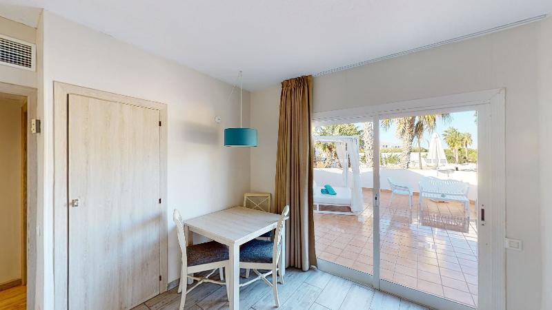 Das Aparthotel verfügt über insgesamt 204 Apartments, verteilt auf mehrere Bungalows. Es verfügt über eine Fläche von 2000 m2 mit Swimmingpool und weitläufigen Gärten, einer eleganten Eingangshalle und einem 24-Stunden-Rezeptionsbereich, Safe, Geldwechsel, Fahrradservice und -verleih und anderen Dienstleistungen. Es bietet kostenloses WLAN im gesamten Komplex, einschließlich der Apartments. Es verfügt außerdem über einen Fernseh- und Leseraum, einen Fitnessraum, einen Minimarkt, eine Cafeteria, eine Tapas-Bar, eine Strandbar, eine gemütliche Terrassenbar und ein klimatisiertes Buffetrestaurant mit Hochstühlen für Kinder. Das Hotel verfügt über Tagungs- und Konferenzräume für bis zu 50 Personen. Zu den weiteren Dienstleistungen gehören ein Wäscheservice und eine medizinische Betreuung. Verschiedene tägliche Unterhaltungs- und Fitnessaktivitäten sowie ein Kinderclub und ein Spielplatz für die Kleinen.