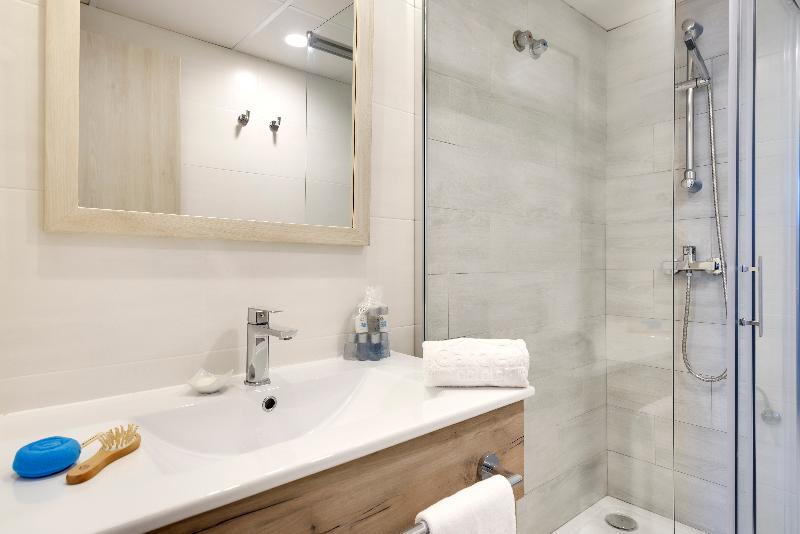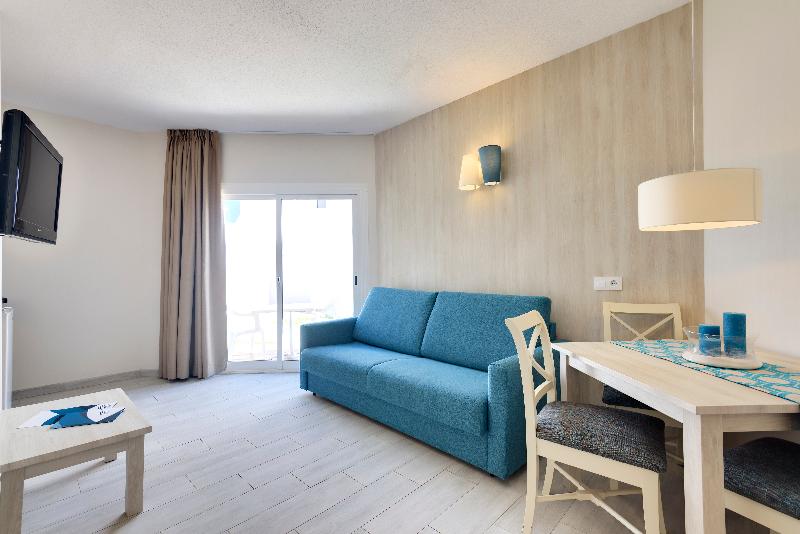 Die geräumigen Apartments werden ständig renoviert und verfügen über eine frische und moderne Einrichtung in menorquinischen Farben. Sie sind geschmackvoll eingerichtet und verfügen über Klimaanlage, komplettes Badezimmer mit Dusche und Haartrockner, Telefon, TV mit internationalen und nationalen Kanälen, Kochnische, Kühlschrank, Mikrowelle, Safe, WLAN. Das Zimmer mit zwei Einzelbetten ist vom Wohnzimmer getrennt, das über ein Doppelschlafsofa und einen Balkon oder eine Terrasse verfügt. Reinigung 5-mal pro Woche, Wechsel der Bettwäsche und Handtücher einmal pro Woche oder auf Anfrage.