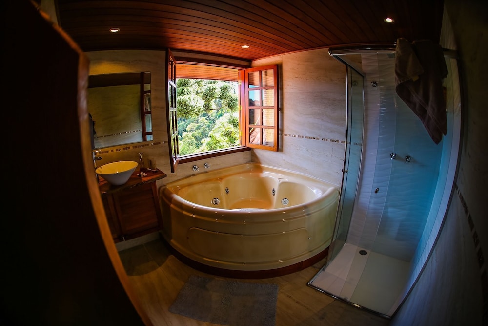 Mansão Austríaca Guesthouse in Campos do Jordão liegt in den Bergen, nur eine 5-minütige Fahrt von Campos do Jordão Convention Center und Capivari Park entfernt. Diese Pension ist 4 km von Ducha de Prata und 4,5 km von Aussichtspunkt Elephant Hill entfernt. Buche einen Aufenthalt in einem der 15 Zimmer mit Smart-TV. Ein WLAN-Internetzugang (kostenlos) ist ebenso verfügbar wie Satellitenempfang. Die Badezimmer bieten kostenlose Toilettenartikel und Haartrockner. Entfernungen werden bis auf 0,1 Kilometer gerundet.