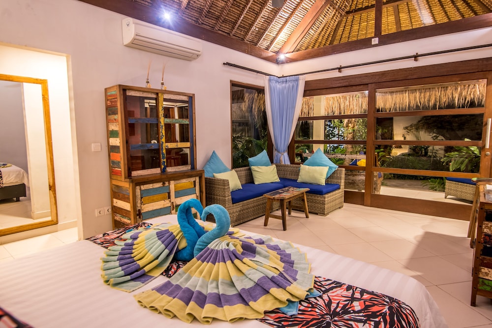 Balisanti Bungalows in Manggis liegt am Strand, nur 5 Minuten Fahrt von Strand von Candidasa und Pura Candidasa entfernt. Dieses Hotel in Strandnähe ist 2,9 km von Andre Spa und 3,5 km von Strand von Balina entfernt. Fühl dich in einem der 15 klimatisierten Zimmer mit Minibar und Flachbildfernseher wie zu Hause. Ein WLAN-Internetzugang (kostenlos) ist ebenso verfügbar wie Kabelempfang. Die Badezimmer bieten Duschen und kostenlose Toilettenartikel. Zur Austattung gehören Safes und Wasserkocher mit Kaffee-/Teezubehör; die Zimmer werden täglich sauber gemacht. Entfernungen werden bis auf 0,1 Kilometer gerundet.
