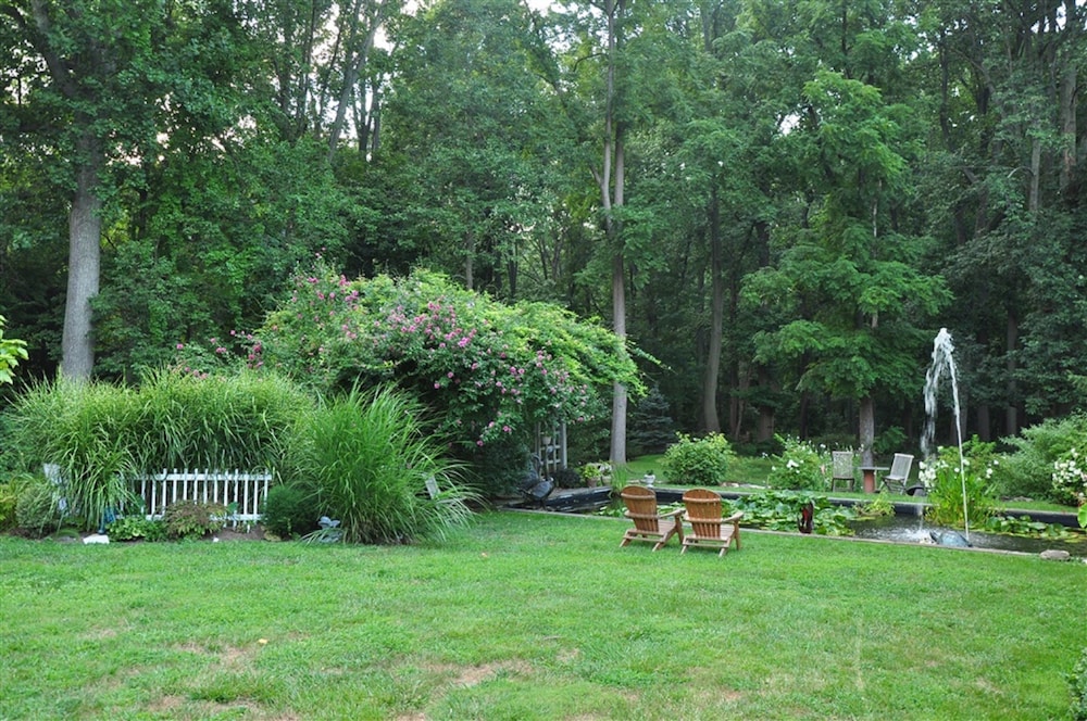 Wild Wisteria in Chadds Ford ist nur eine 5-minütige Fahrt von Longwood Gardens (Botanischer Garten) und Chaddsford Winery (Weingut) entfernt. Dieses B&B ist 18,6 km von Wilmington Riverwalk und 1 km von Bark Park at Pennsbury Township Municipal Park entfernt. Fühl dich in einem der 7 klimatisierten Zimmer mit Espressomaschine wie zu Hause. In deinem Zimmer findest du ein Pillowtop-Bett mit hochwertige Bettwaren vor. Ein WLAN-Internetzugang (kostenlos) ist ebenso verfügbar wie Kabelempfang. Die Badezimmer bieten kostenlose Toilettenartikel und Haartrockner. Entfernungen werden bis auf 0,1 Kilometer gerundet.