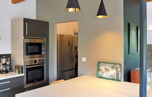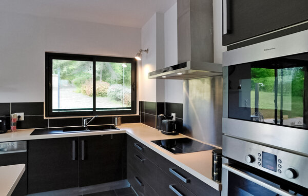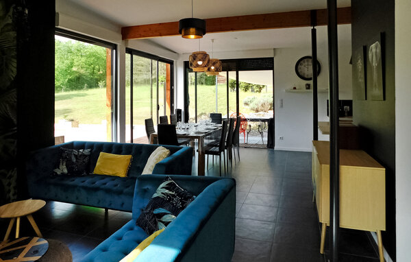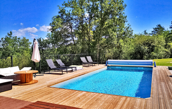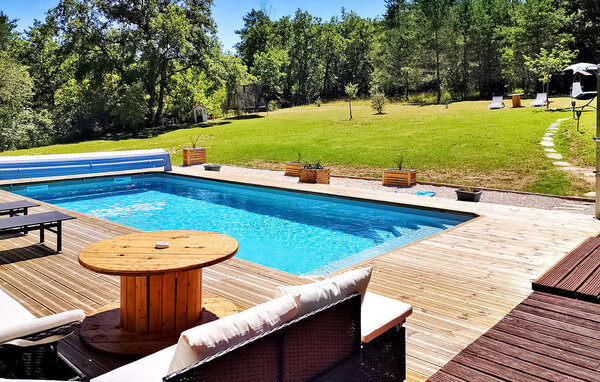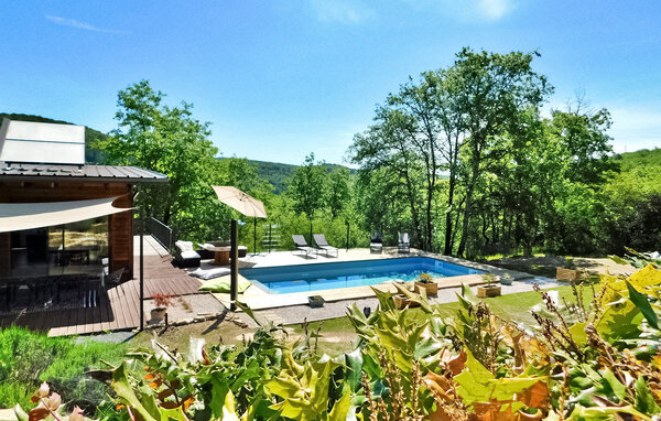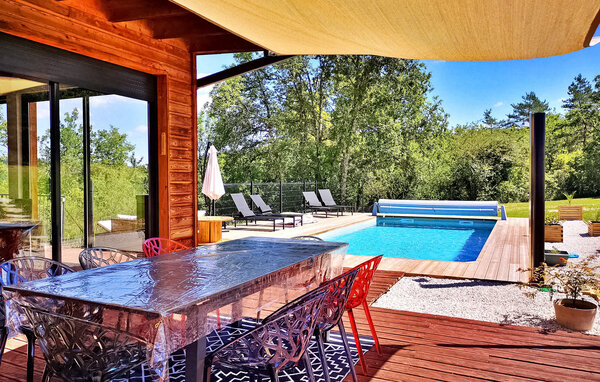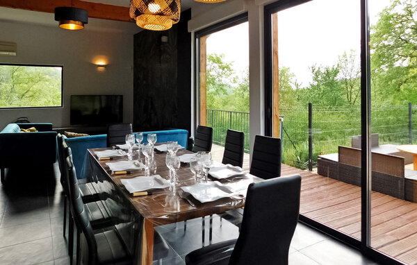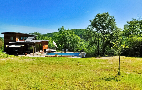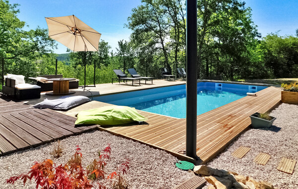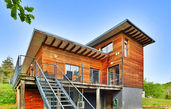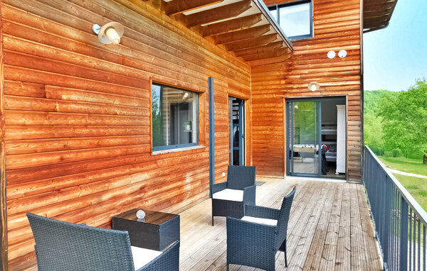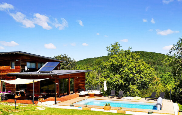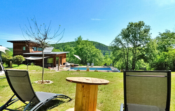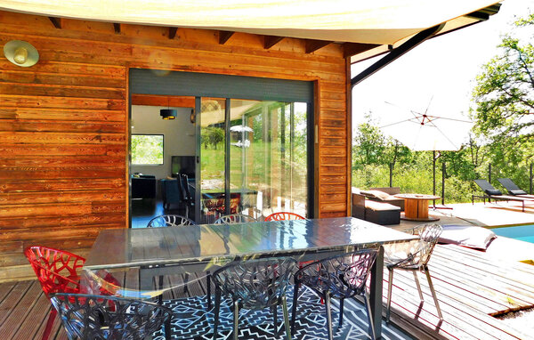 Dieses moderne Holzferienhaus in der Dordogne liegt in einer ruhigen ländlichen Umgebung in der Nähe von Saint Amand de Coly. Das Haus verfügt über einen klimatisierten und hellen Erdgeschossbereich mit einer gemütlichen Sitzecke, einem Essbereich und einer offenen Küche, die mit den wichtigsten Geräten ausgestattet ist. Im Erdgeschoss befinden sich außerdem zwei Schlafzimmer, eines davon ist mit Etagenbetten und einem Tischfußballtisch für Kinder ausgestattet. Im Obergeschoss befinden sich zwei klimatisierte Schlafzimmer und ein gemeinsames Duschbad. Im Außenbereich verfügt das Anwesen über einen privaten beheizten Pool, einen Kinderspielbereich mit Trampolin und Spielhaus, mehrere Terrassen mit Gartenmöbeln und eine Plancha. Bitte beachten Sie, dass der Hauptzugang über eine Holztreppe mit Handläufen und einem Zugangstor erfolgt. Im Winter erfolgt die Beheizung durch einen Pelletofen. Das Haus liegt auf dem Land außerhalb des Dorfes Saint-Amand-de-Coly (örtlicher Lebensmittelladen, Restaurant und Brotdepot).