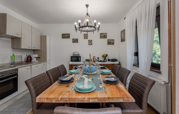 In diesem geräumigen Ferienhaus am Fluss Kupa genießen Sie Ruhe, Natur und Komfort. Ideal für Gruppen oder Freunde, bietet Ihnen das Haus eine moderne, und teilweise klassische Einrichtung und jede Menge Platz. Der lichtdurchflutete Wohnbereich schafft ein gemütliches Ambiente, während der Spielraum mit Billard und Tischtennis und weiterer Essküche für Unterhaltung sorgt.