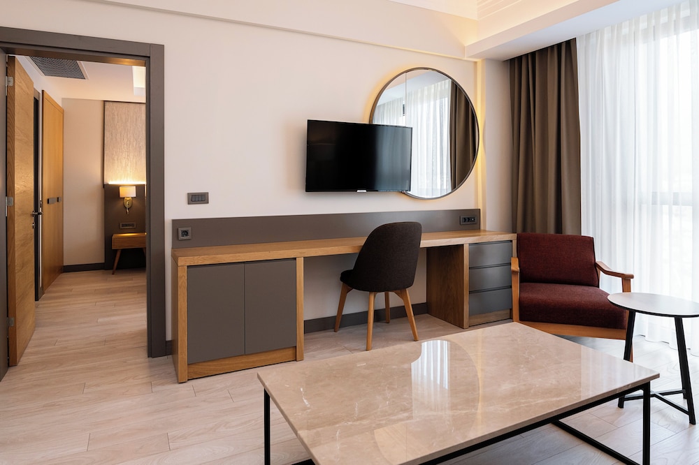 THE EMPORIA HOTEL besticht durch eine zentrale Lage in Denizli, nur 15 Gehminuten von Forum Çamlık und Pamukkale Üniversitesi entfernt. Dieses Hotel ist 2,1 km von Pamukkale Weine und 2,6 km von Atatürk-Stadion Denizli entfernt. Fühl dich in einem der 108 Zimmer, die Minibars (mit einigen kostenlosen Artikeln) und einen Smart-TV bieten, wie zu Hause. Ein WLAN-Internetzugang (kostenlos) ist ebenso verfügbar wie Kabelempfang. Die Badezimmer bieten Duschen, Haartrockner und Hausschuhe. Zur Austattung gehören Telefone ebenso wie Safes und Schreibtische. Entfernungen werden bis auf 0,1 Kilometer gerundet.